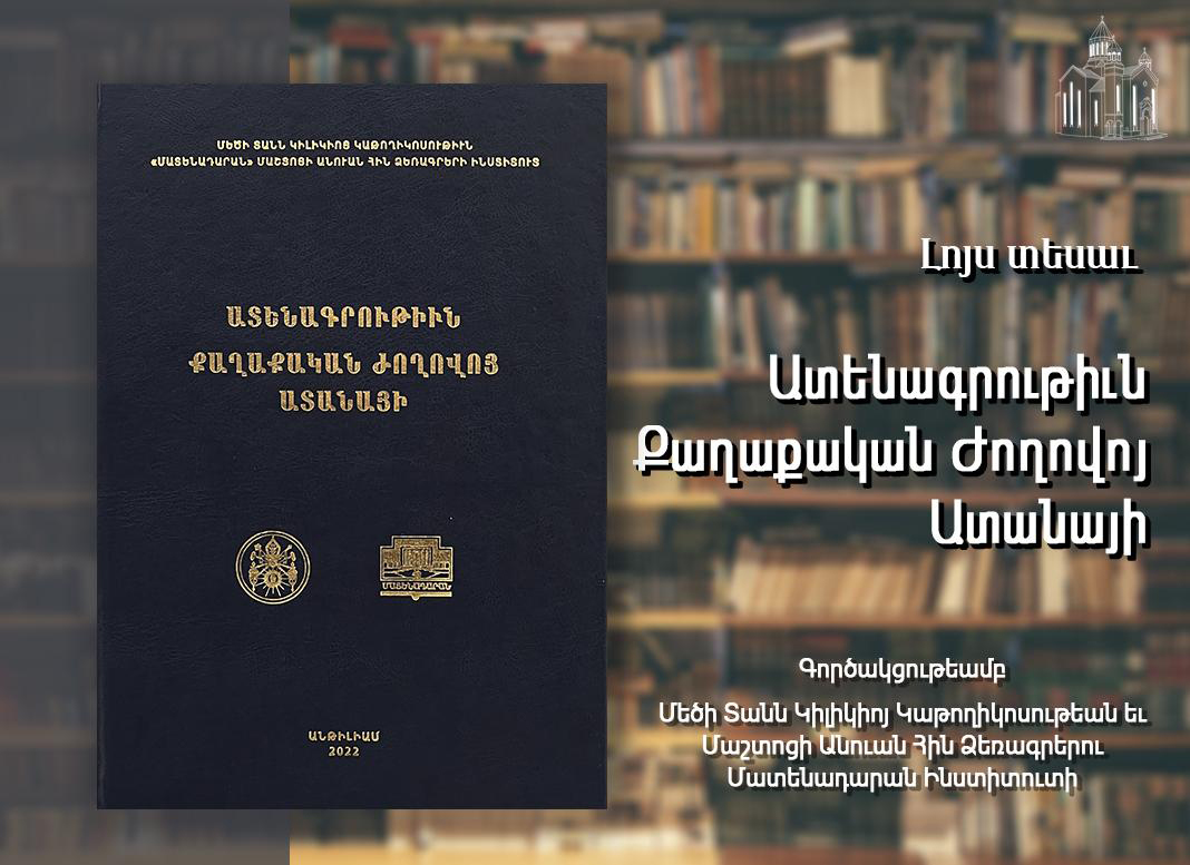 Օրհնութեամբ Արամ Ա. վեհափառ հայրապետին, Մեծի Տանն Կիլիկիոյ կաթողիկոսութեան եւ Մ. Մաշտոցի անուան հին ձեռագիրներու մատենադարան հիմնարկին միջեւ գործակցութեամբ, մայրավանքի տպարանէն լոյս տեսաւ «Ատենագրութիւն քաղաքական ժողովոյ Ատանայի» հատորը` խմբագրութեամբ Արմէն Մալխասեանի: