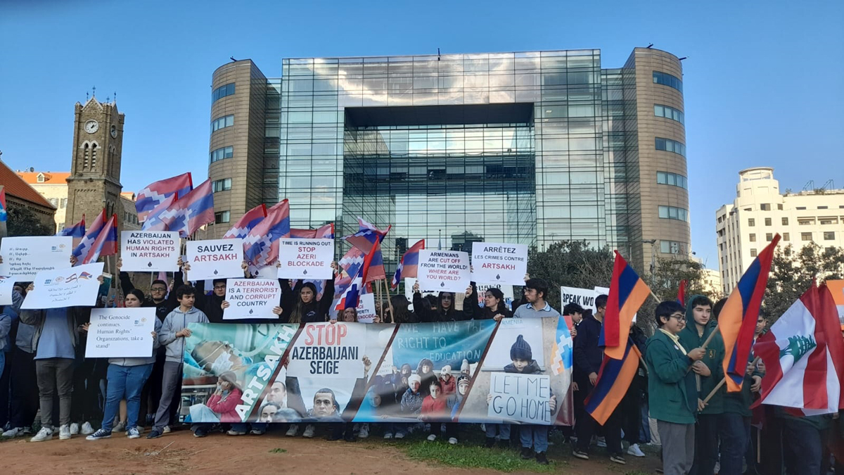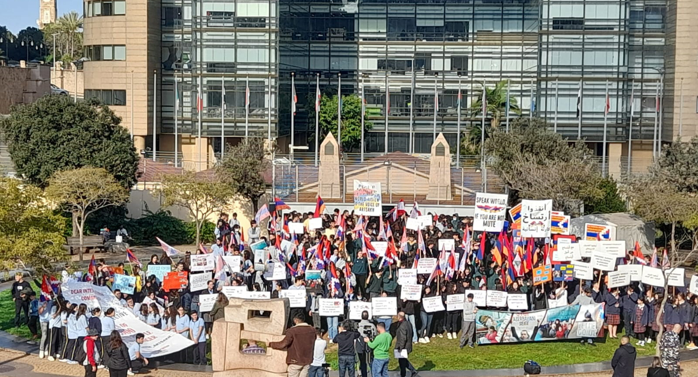 Մէկ շաբաթէ ի վեր շարունակուող լիբանանահայութեան` Արցախի նկատմամբ զօրակցութեան միասնական քայլերուն ծիրին մէջ, երէկ` հինգշաբթի, 22 դեկտեմբեր 2022-ի կէսօրին, լիբանանահայ վարժարաններու աշակերտներ Արցախի զօրակցական աշակերտական ցոյց կատարեցին Լիբանանի մէջ ՄԱԿ-ի ԷՍՔՈՒԱ-ի կեդրոնատեղիին առջեւ: