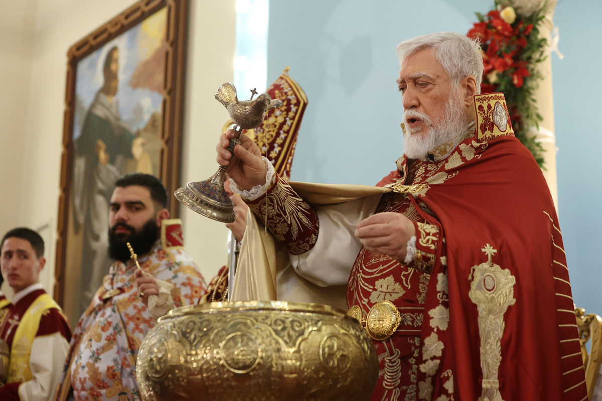 Հայ եկեղեցւոյ աւանդութեան համաձայն, Աստուածայայտնութեան տօնին կը նշենք նաեւ Քրիստոսի Ս. Մկրտութիւնը: Առ այդ, Կոմիտաս սրբազանը միւռոնաթափ աղաւնին Ս. Երրորդութեան խորանէն «Լոյս ի լուսոյ» հոգեթով շարականին երգեցողութեամբ բերաւ Ս. խորան, եւ ձեռամբ վեհափառ հայրապետին կատարուեցաւ Քրիստոսի մկրտութիւնը խորհրդանշող ջրօրհնէքի արարողութիւնը: Ապա, վեհափառ հայրապետը, ներկայ թէ առցանց Ս. պատարագին մասնակցող մեր ժողովուրդի զաւակներուն ուղղեց Ս. Ծննդեան հայրապետական պատգամը: