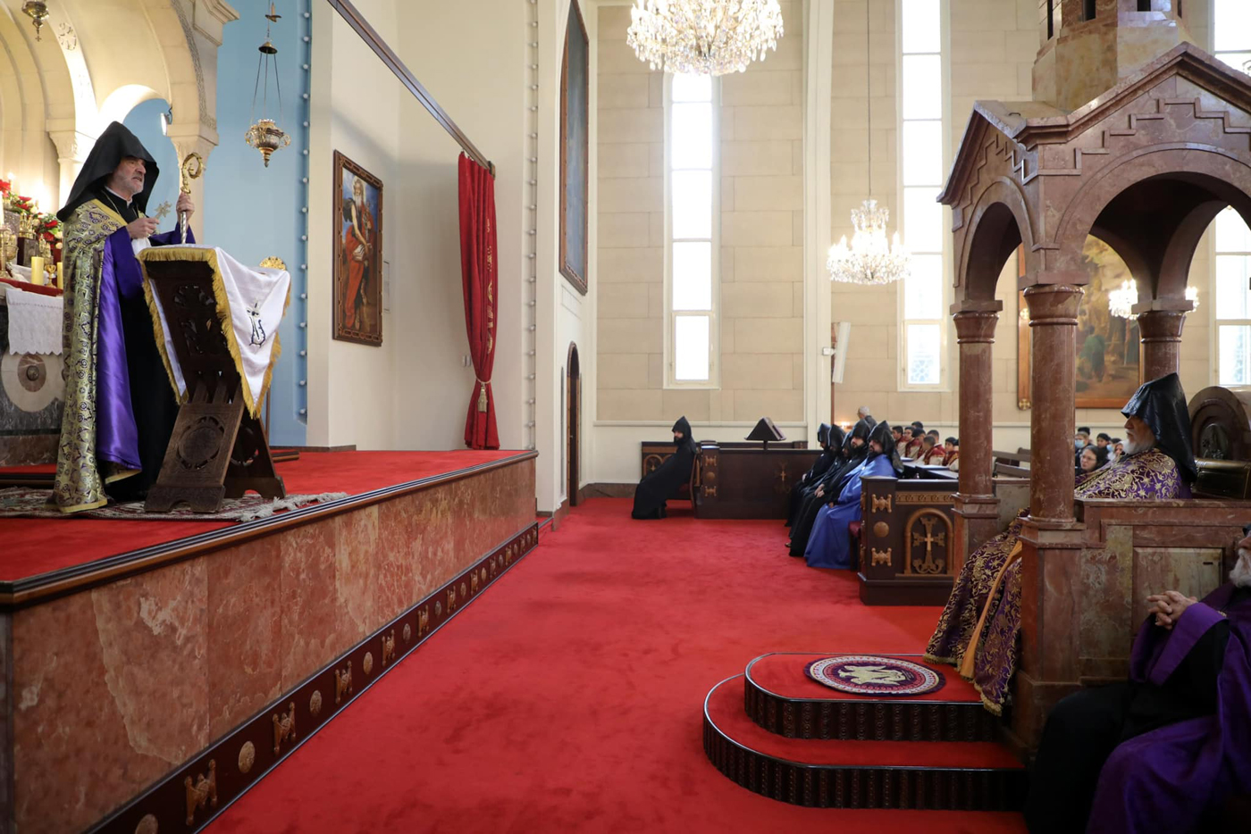 Փակելէ առաջ իր քարոզը, սրբազան հայրը մատնանշեց, թէ յաճախ ո՞ւր կ՛երթանք, ի՞նչ պէտք է ընենք հարցումներուն անհատական պատկերացումներ, բացատրութիւններ կը տրուին եւ կու տանք, բայց ո՛չ ոք, ո՛չ հայրենիքի եւ ո՛չ ալ սփիւռքի մէջ նախաձեռնութիւնը կ՛առնէ այս վերակազմակերպչական աշխատանքին, որ անյետաձգելի անհրաժեշտութիւն մըն է մեր կեանքին համար: Հետեւաբար ան իր աղօթքը վերառաքեց առ Աստուած, որպէսզի պայծառացնէ միտքը մեր հայրապետին, պայծառացնէ միտքերը մեր եկեղեցւոյ ու ազգի ղեկավարներուն, մեր ժողովուրդի զաւակներուն կամք, կորով եւ հաւատք ներշնչէ: Արցախի մեր հայրենակիցներուն ազատութիւն եւ վերանկախացում պարգեւէ եւ մեր հաւաքական, միասնական կեանքը շաղախէ աստուածային սիրով: