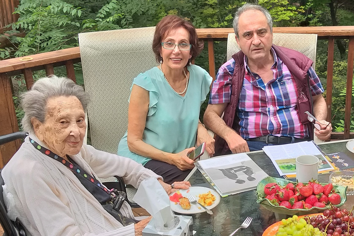 Հոն էինք կնոջս` Էլոյին հետ, այս անգամ` յատուկ գործով: Տիգրանն ու Անահիտը թոյլ չտուին, որ հիւրանոց իջեւանինք: Մեր հասած երրորդ օրն իսկ կազմակերպեցին ճաշկերոյթ մը ու հրաւիրեցին իմ ծանօթներէս ու ընկերներէս շատեր, ինչպէս` կերպարուեստագէտ Գեղամ Թազեանը, գեղանկարիչ Նորա Իփէկեանը, յայտնի մտաւորական ու լրագրող Էտ. Ազատեանը, ժամակակից արուեստի ցուցասրահի տէր եւ հաւաքորդ տիկ. Զապէլ Պէլեանը (դժբախտաբար տոք. Կարապետը անդարձ մեկնած էր) ու Ճիմի եւ Ժենիա Տէրեանները: