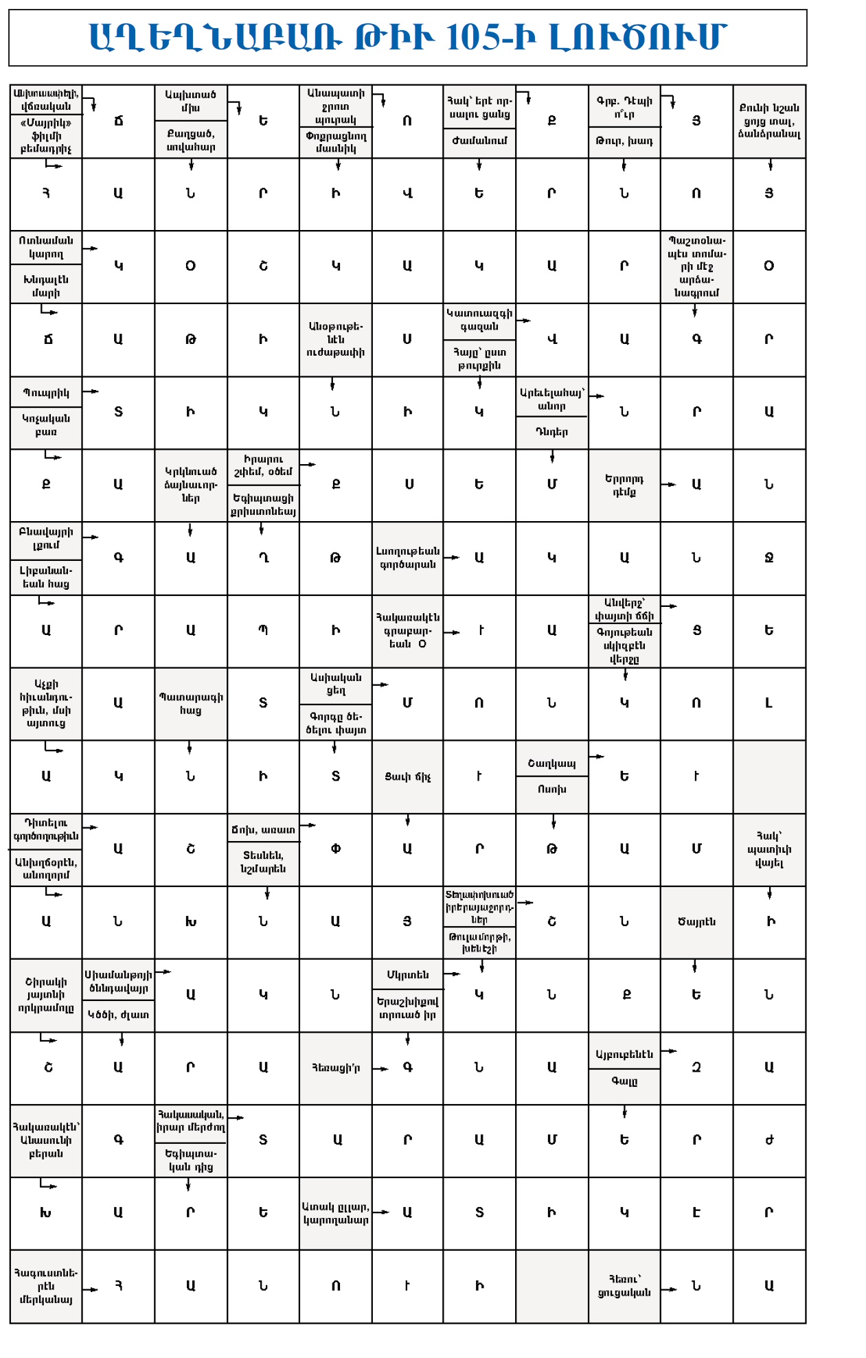 Աղեղնաբառ Թիւ 105-ի Լուծում