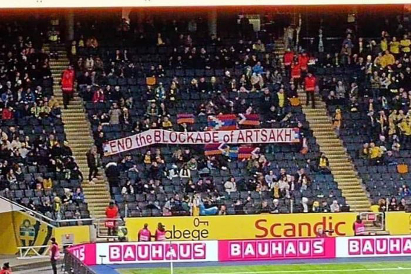Եւրոպայի ֆութպոլի ախոյեանութեան` «ԵՒՐՕ-2022»-ի զտումի Բ. հանգրուանի Շուէտ-Ազրպէյճան մրցումին, բազմաթիւ շուէտահայեր ներկայ գտնուելով այս հանդիպումին իրենց զօրակցութիւնը յայտնեցին արցախահայութեան` թրիւպինին մէջ բարձրացնելով Արցախի շրջափակումը դադրեցնելու կոչով պաստառ: