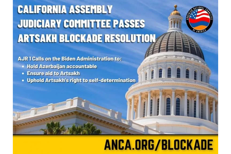 Ամերիկայի Հայ դատի յանձնախումբի մամլոյ հաղորդագրութեան համաձայն, Ամերիկայի Հայ դատի յանձնախումբին կողմէ սատարուած հակաշրջափակման AJR 1 բանաձեւը, որ կը դատապարտէ Ազրպէյճանի կողմէ Արցախի 100-օրեայ շրջափակումը, ընդունուած է Քալիֆորնիոյ համագումարի (խորհրդարան) դատական յանձնախումբին կողմէ` երկկուսակցական ճնշող աջակցութեամբ: