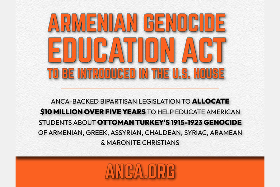 Միացեալ Նահանգներու Քոնկրեսի ստորին պալատի անդամ խումբ մը քոնկրեսականներ անգամ մը եւս Ներկայացուցիչներու տան ներկայացուցած են Հայոց ցեղասպանութեան կրթական հրամանագիրը` հիմնուելով այն իրողութեան վրայ, որ Միացեալ Նահանգներու Քոնկրեսն ու Միացեալ Նահանգներու նախագահը պաշտօնապէս ճանչցած են զայն: Այս մասին հաղորդեց Ամերիկայի Հայ դատի յանձնախումբը: