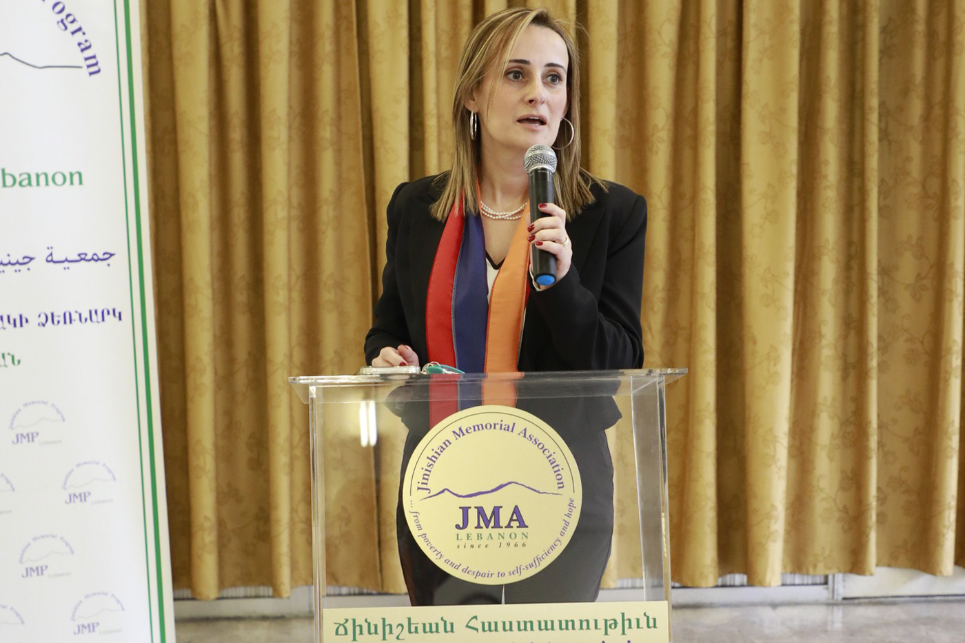 Լիբանանի եւ Հայաստանի քայլերգներու ունկնդրութենէն ետք օրուան պատշաճ բացման խօսքը կատարեց «Ճինիշեան» յիշատակի ձեռնարկի տնօրէն Քրիստին Դանիէլեան – Սարգիսեան: Ան նշեց, որ այսօրուան ձեռնարկը կը միտի միասին ըլլալ` գոյատեւելու եւ նոր ապագայ կերտելու համար: Անդրադառնալով օրուան խորհուրդին` ան նշեց, որ բոլորս զաւակներն ենք Մեծ եղեռնէն, ջարդէն, անապատներէն քալած, Լիբանան-Սուրիա հասած մեր նախահայրերուն: Մենք մեր երակներուն ու ջիղերուն մէջ ունինք ջարդի արհաւիրքը, վախը: Ան խօսեցաւ ներկայիս մեր դիմագրաւած դժուարութիւններուն մասին եւ զուգահեռներ գծեց Ցեղասպանութենէն վերապրած հայորդիներու կեանքին եւ այն մասին, թէ վերջիններս տեղահանութենէն ու գաղթէն ետք ինչպիսի` ծանր պայմաններու եւ թիթեղաշէն տուներու մէջ ապրեցան, զաւակներ դաստիարակեցին եւ մեզ հայ պահեցին: Քրիստին Դանիէլեան- Սարգիսեան մատնանշեց ներկայ կարգ մը ծնողներու անփոյթ վերաբերումը հայոց լեզուին նկատմամբ եւ հաստատեց, որ հայերէնը միայն լեզու չէ, ան մշակոյթ է եւ մեր առօրեան: Եթէ մենք չկարենանք զայն պահել, մեր զաւակներուն փոխանցել, ապա մէկ դարու աշխատանքը պիտի գերեզմանուի: Ան կոչ ուղղեց պահանջատիրական ջահը միշտ վառ պահել, մանաւանդ` ներկայիս արհեստագիտական սրընթաց զարգացման շրջանին, մեր ընտանեկան արժէքները պահելու կոչուած են բոլոր հայ մայրերը: