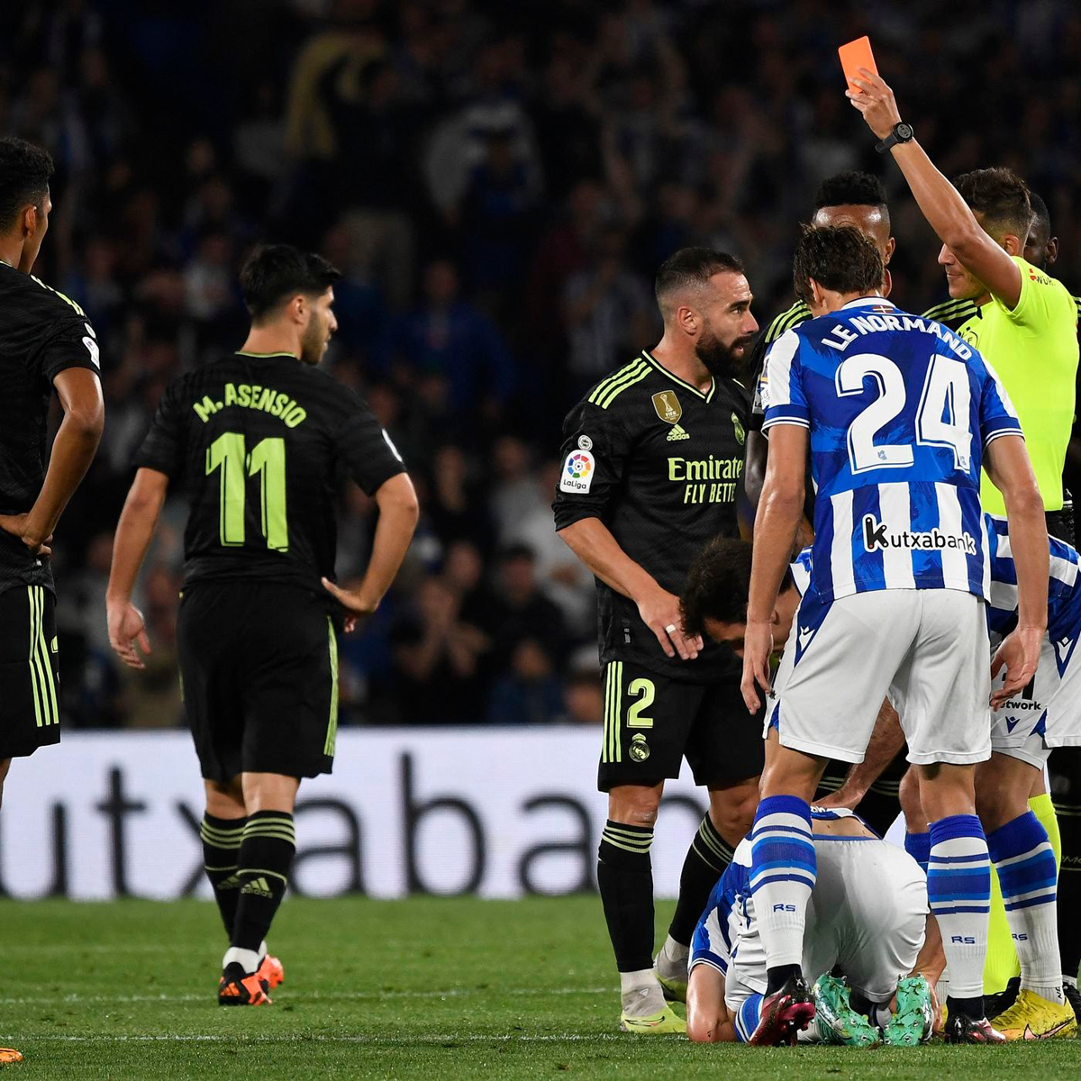Մարզիչ Քարլօ Անչելոթթթիի գլխաւորած կազմը` Ռէալ Մատրիտ, մրցումը աւարտեց տասը մարզիկով, երբ 61-րդ վայրկեանին Տենի Քարվախալ կարմիր քարտ մը ստացաւ: