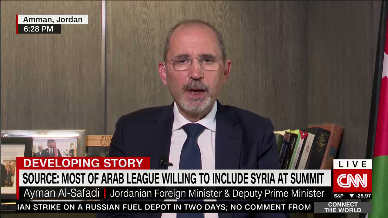 Յորդանանեան դիւանագիտութեան պետը «Սի.Էն.Էն.»-ի հետ հարցազրոյցի ընթացքին յայտնեց. «Բոլորը կը նկատեն, որ քաղաքական հոլովոյթի յաջողութիւնը կը պահանջէ միջազգային ընտանիքի եւ սուրիական կառավարութեան ներգրաւուածութիւնը` լուծելու համար տագնապի մարտահրաւէրները»: