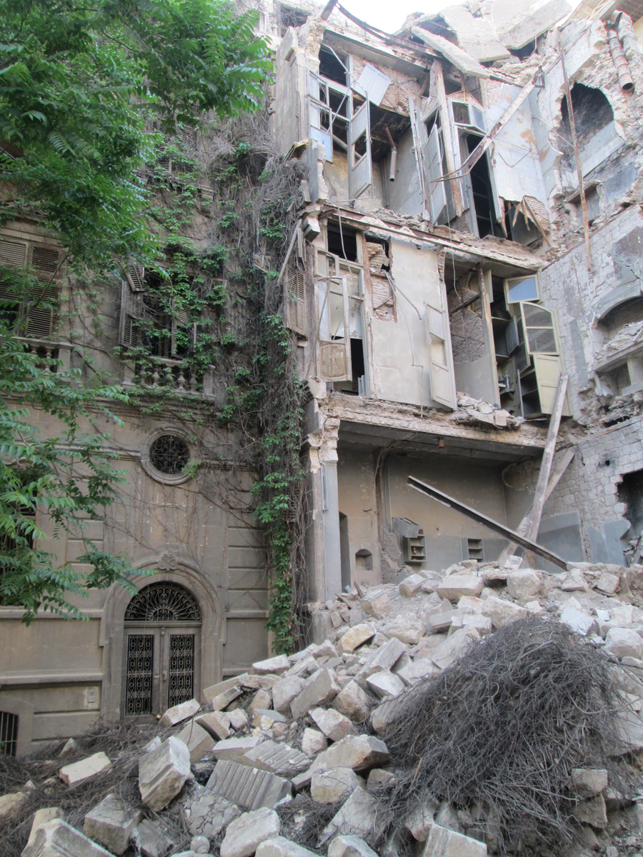 Մօրս տան պատշգամէն դիտուած` իւրայատուկ տեսարան մը, որ հազուագիւտ դալարագեղ պատ մըն էր, եռայարկ շէնքի մը հասակով, կը նմանի աւերակներու վրայ ջարդուած անտառի մը, որուն դիմաց նստելու եւ առաւօտեան սուրճը ըմպելու հաճոյքէն զրկուած էի, երբ Հալէպ հասայ այս անգամ:
