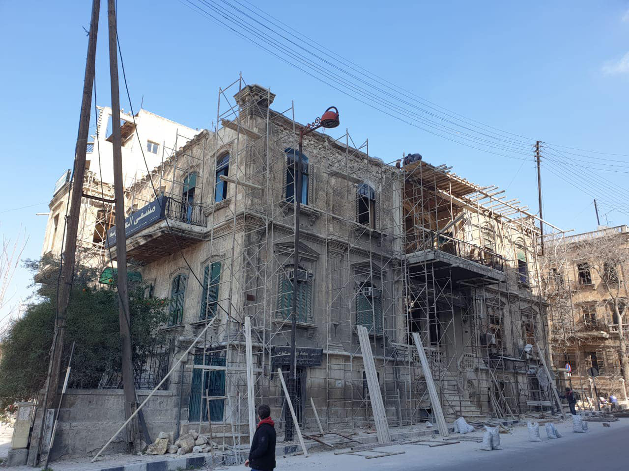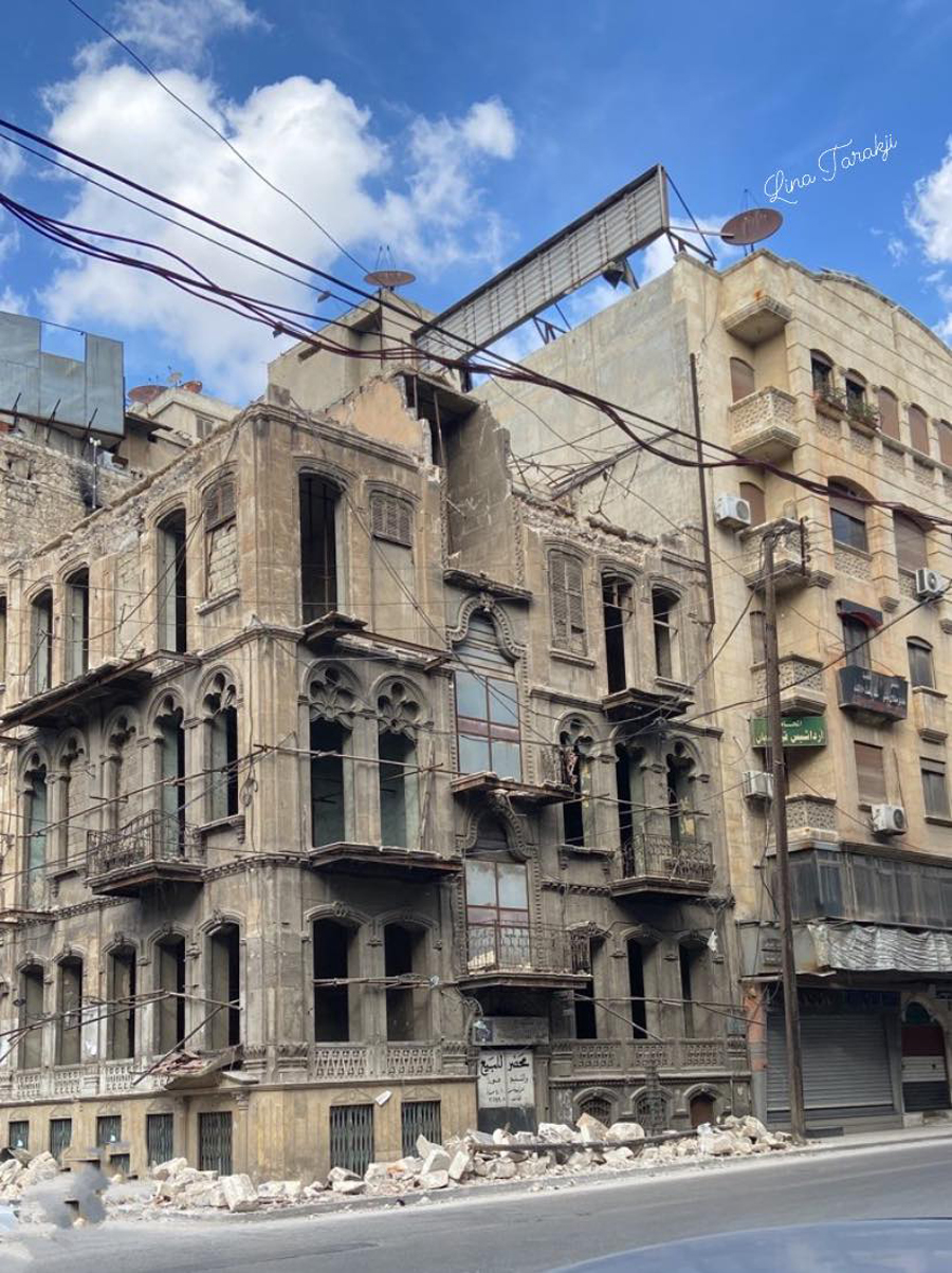 Առաջին շէնքը կը նկատուի ոստիկանատունը, որուն բացումը տեղի ունեցած է 1900 թուականին: Կառոյցին եւ յարակից պարտէզին սեփականութեան կէսը արձանագրուած է Հալէպի առաքելական համայնքին, իմա՛ Ս. Քառասնից Մանկանց մայր եկեղեցւոյ կալուածներու շարքին, միւս բաժինն ալ` որպէս մահմետական վաքըֆ: