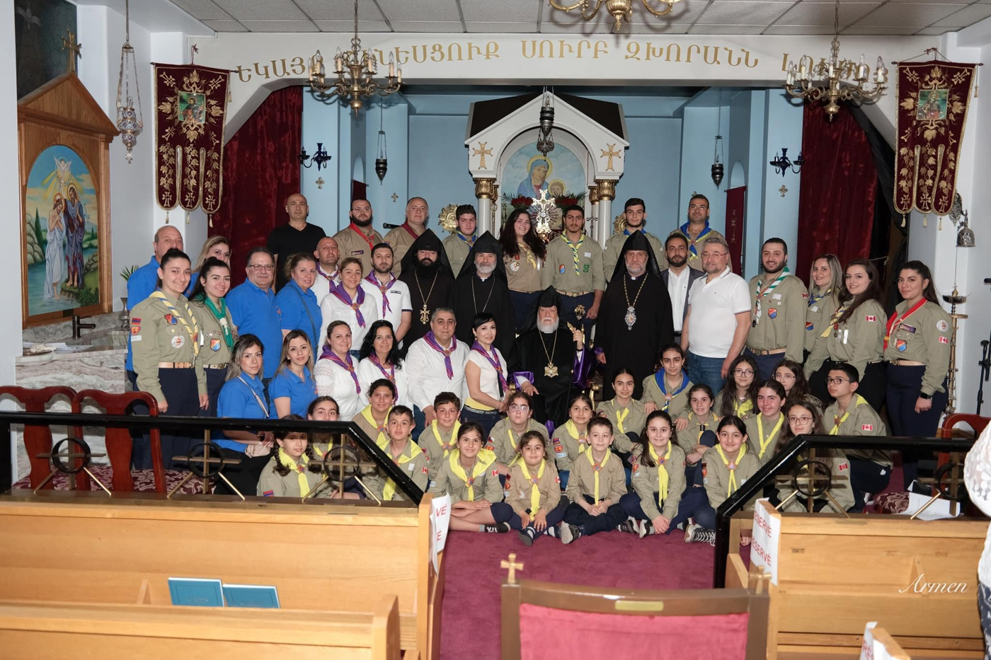 – Ուրբաթ, 2 յունիս 2023-ի երեկոյեան ժամը 7:30-ին, միաբան ու քահանայ հայրերէ եւ դպրաց դասի անդամներէ կազմուած հայրապետական թափօրը, ՀՄԸՄ-ի Լաւալի մասնաճիւղի շեփորախումբին ու սկաուտներու առաջնորդութեամբ, հասաւ Ս. Գէորգ եկեղեցի, ուր տեղի ունեցաւ կանոնական աղօթք: Քանատայի հայոց թեմի առաջնորդ Բաբգէն արք. Չարեան բարի գալուստ մաղթեց եւ իր երախտագիտութիւնը յայտնեց կաթողիկոսին` անոր օրհնաբեր այցելութեան համար: «Անցնող եօթը տարիներուն վեհափառ հայրապետը իր բարոյական ներկայութեամբ, իր գրութիւններով եւ պատգամներով, համազգային թէ՛ այլապէս տագնապներու ընթացքին իր քաջ կեցուածքով ուղղորդեց մեզ` չյուսահատելու եւ չտկարանալու համար: Ան` իբրեւ հայր ու հովուապետ, թելադրեց վերականգնիլ, վերակազմակերպուիլ, վերահզօրանալ, վերաշխուժանալ եւ մանաւանդ շարունակել մեր պայքարը բոլոր բնագաւառներէն ներս, որպէսզի մենք կարենանք ոտքի մնալ, կենսունակ մնալ եւ հայութեամբ շնչել, հայօրէն ապրիլ ու հայութեան համար պայքարիլ», ըսաւ Բաբգէն արքեպիսկոպոս: