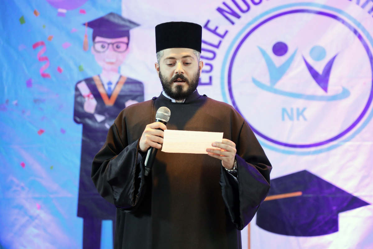 Շրջանի հոգեւոր հովիւ Գրիգոր քհնյ. Եղիայեան այս առիթով արտասանած իր խօսքին մէջ ողջունեց ներկաները, շնորհաւորեց շրջանաւարտները` Լիբանանի Հայոց թեմի առաջնորդ Շահէ արք. Փանոսեանի անունով: Ան շնորհակալութիւն յայտնեց դպրոցի տնօրէնութեան եւ ուսուցչական կազմին, որոնք ճիգ չեն խնայեր, որպէսզի վարժարանը լաւագոյն ուսումը տայ աշակերտներուն եւ անոնց յաջողութեան հասցնէ: Քահանայ հայրը շնորհակալութեան խօսք ուղղեց նաեւ ծնողներուն` անոնց դաստիարակութեան, բարոյական եւ հոգեկան զօրակցութեան համար, որպէսզի իրենց զաւակները կարենան ուսում ստանալ եւ դէպի ապագայ ուղղուիլ համապատասխան վկայականներով: