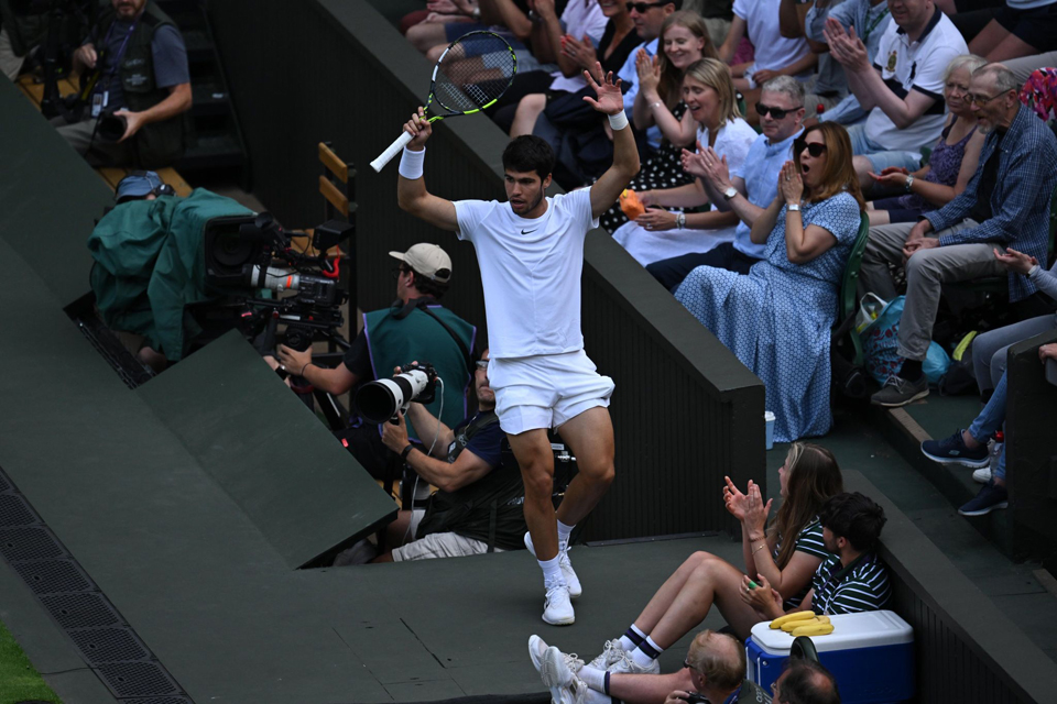 Լոնտոնի մէջ (Անգլիա) տեղի ունեցող «Ուիմպըլտըն»-ի թենիսի կրան շլեմի միջազգային բաց մրցաշարքի 1-16-րդ հանգրուանի մրցումներուն ծիրին մէջ, թիւ 1 դասուած սպանացի Քարլոս Ալքարաս, որ մրցեցաւ իտալացի Մաթէօ Պերրեթինիի դէմ, ապահովեց քառորդ աւարտականի իր տոմսը` անոր դէմ արձանագրելով 3-6, 6-3, 6-3 եւ 6-3 արդիւնքով յաղթանակ մը: