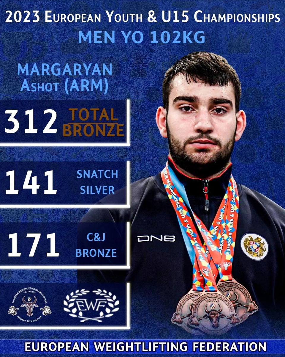 Հայաստանի ներկայացուցիչ Աշոտ Մարգարեան (102 քկ), Մոլտովայի մայրաքաղաք Քիշնեւի մէջ իր աւարտին մօտեցող Եւրոպայի ծանրաբարձութեան պատանեկան ախոյեանութեան (15 եւ 17 տարեկանէն վար) տիրացաւ պրոնզ մետալին: