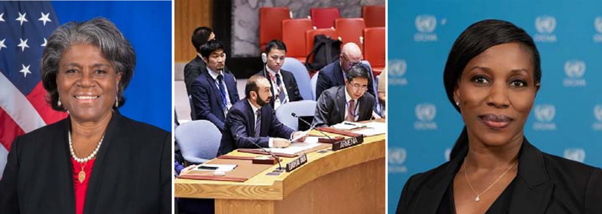 Նիստը տեղի ունեցաւ Միացեալ Նահանգներու ներկայացուցիչին նախագահութեամբ: Այժմու նստաշրջանին նախագահը Միացեալ Նահանգներն է: Կարճ ճառ մը արտասանեց դեսպան Լինտա Թոմըս Կրինֆիլտ:
