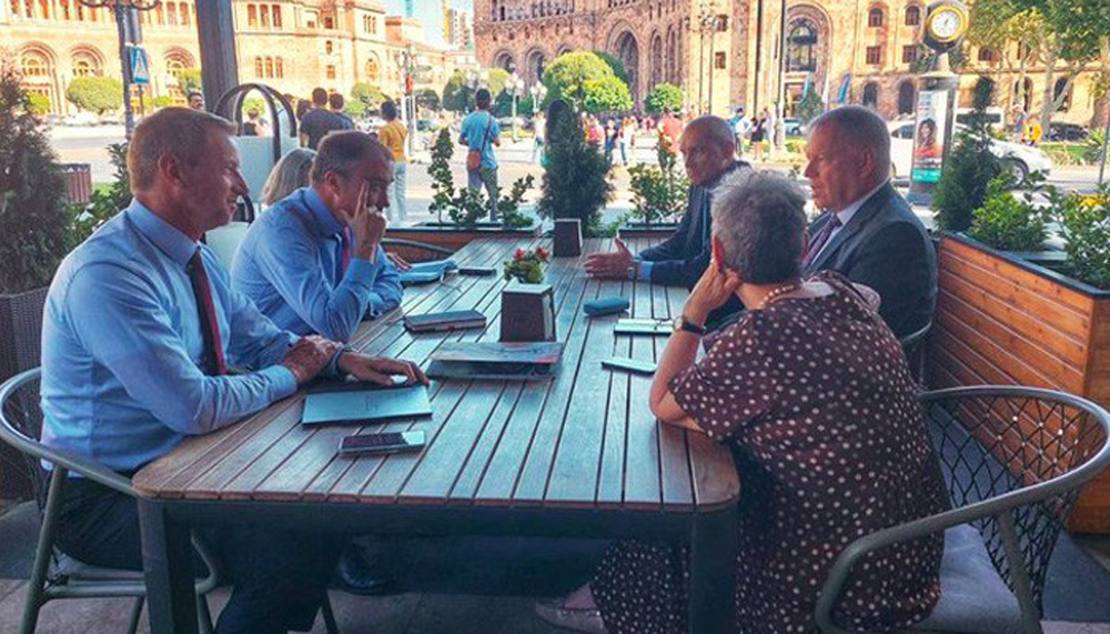 Հայաստանի մէջ Եւրոպական Միութեան առաքելութիւնը «Թուիթըր»-ի իր էջին վրայ հաղորդած է, որ առաքելութեան ղեկավար Մարքուս Ռիթըր, Հարաւային Կովկասի եւ Վրաստանի մէջ ճգնաժամի հարցերով Եւրոպական Միութեան յատուկ ներկայացուցիչ Թոյվօ Քլաար եւ Հայաստանի մէջ Եւրոպական Միութեան պատուիրակութեան ղեկավար, դեսպան Անտրէա Վիքթորին հանդիպած են Երեւանի մէջ: Այս մասին կը յայտնէ «1լուրեր» կայքը: