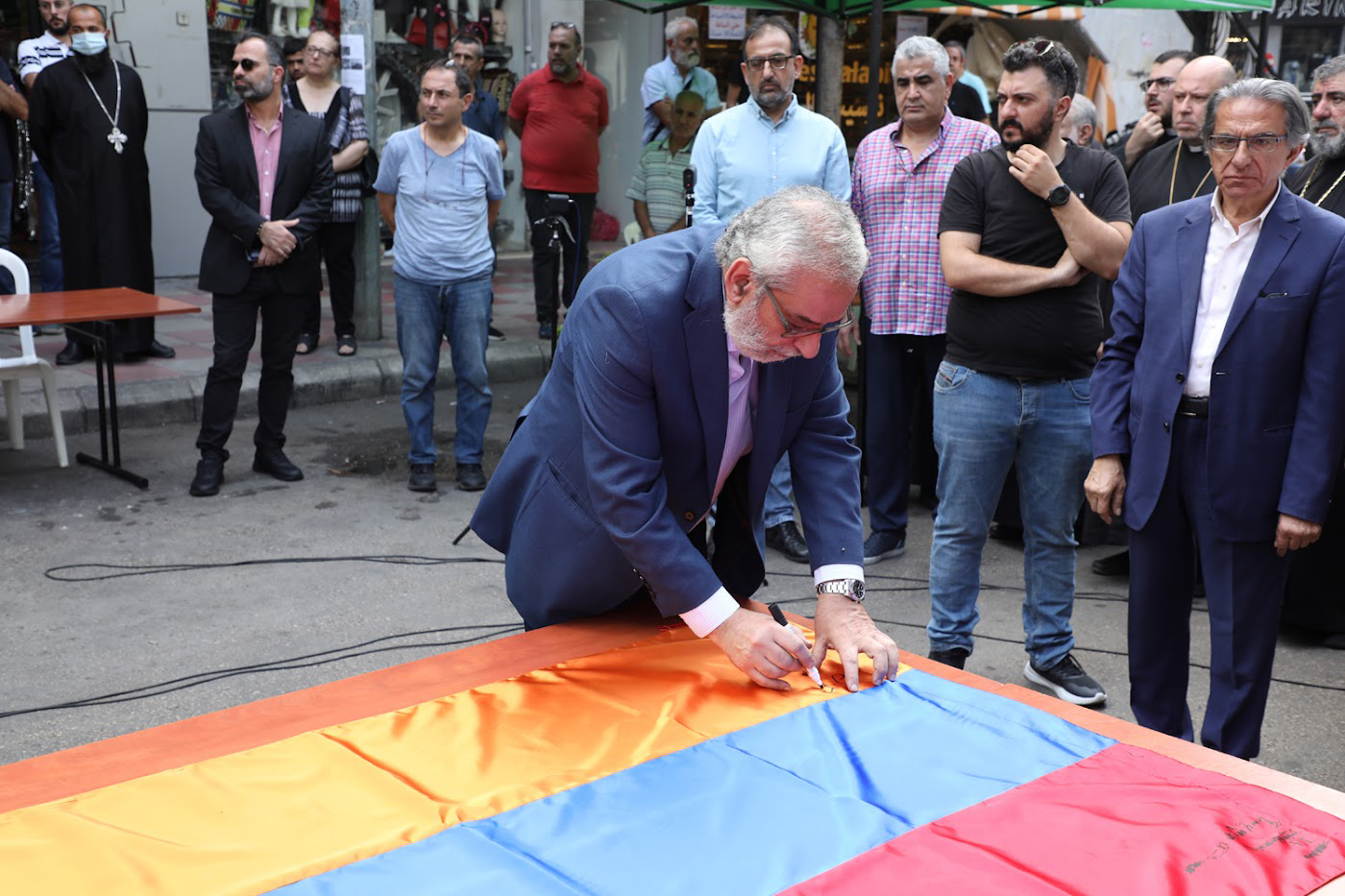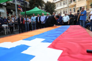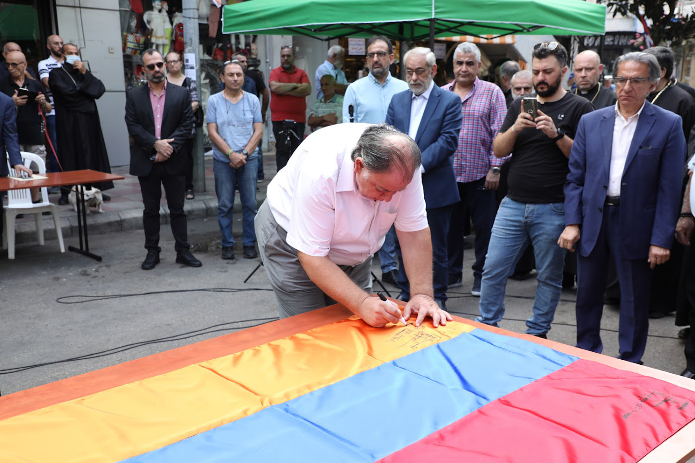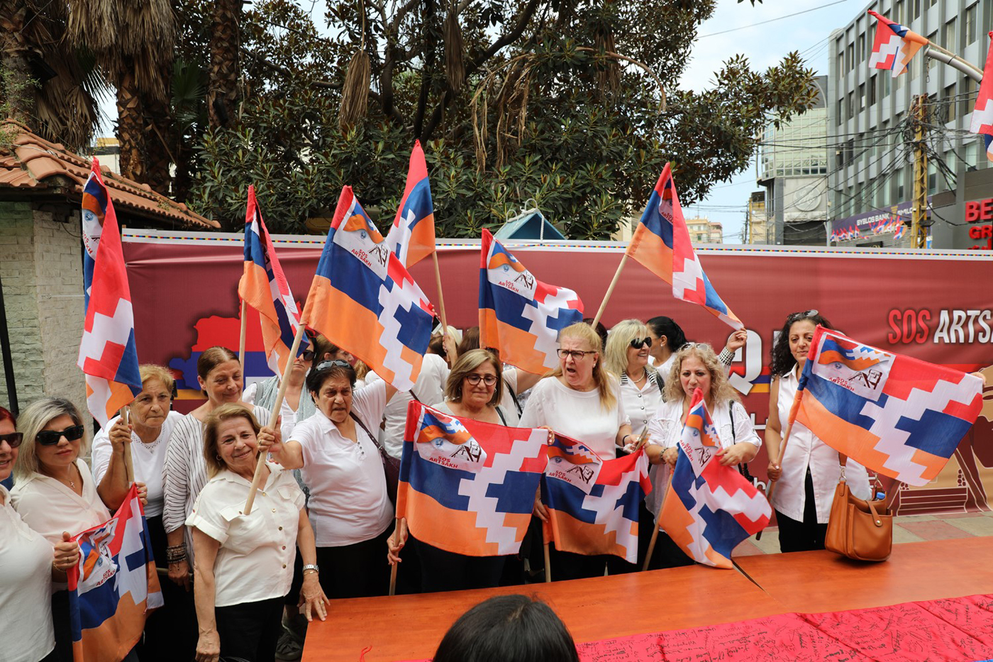 Սոցեալ դեմոկրատ Հնչակեան կուսակցութեան, Հայ յեղափոխական դաշնակցութեան եւ Ռամկավար ազատական կուսակցութեան նախաձեռնութեամբ, ուրբաթ, 1 սեպտեմբեր 2023-ի առաւօտէն սկսեալ լիբանանահայ պատկան մարմիններու ներկայացուցիչներ, համայնքապետներ, պատասխանատուներ, միութիւններու եւ կազմակերպութիւններու անդամներ, հայորդիներ, նոյնիսկ օտարներ իրենց ստորագրութիւնը զետեղեցին Պուրճ Համուտի հրապարակին վրայ զետեղուած Արցախի դրօշակին վրայ` հաստատելով, որ իրենք եւս պահանջատէր են արցախահայութեան իրաւունքներու յարգումին եւ զօրակից իրենց արցախահայ քոյր-եղբայրներուն: