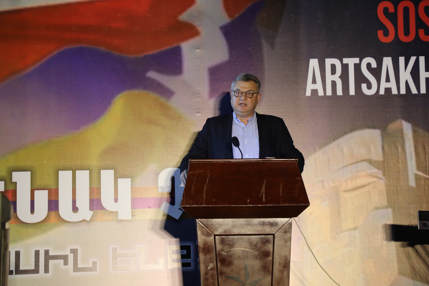 Իր խօսքը ուղղելով արցախահայութեան` բանախօսը ըսաւ, որ լիբանանահայութիւնը պիտի շարունակէ պայքարիլ Արցախի տարածքային վերականգնումին եւ անկախութեան ճանաչումին համար, թոյլ պիտի չտա՛յ, որ Ազրպէյճանը այս երկրին մէջ յաջողի քարոզչութիւն կատարել եւ փոխել հակամարտութեան էութիւնը` բոլոր կողմերուն պիտի շարունակէ բացատրել, որ հարցը կրօնական բնոյթ չունի, այլ մարդու եւ ազգերու տարրական իրաւունքին հետ կապուած է ազատ ու անկախ ինքնորոշուելու իրեն պատկանող տարածքներուն վրայ: