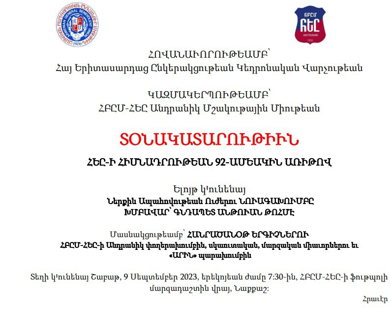 - Նոր ուսանողներու արձանագրութիւնները կը սկսին երկուշաբթի, 21 օգոստոս 2023-ին, առաւօտեան ժամը 9:00-1:00 (բացի շաբաթ եւ կիրակի օրերէն):