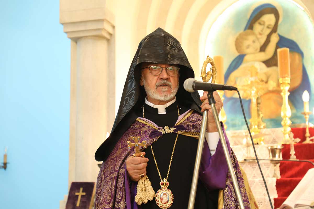 Շարունակելով իր խօսքը` սրբազանը ըսաւ, որ այս օրը Հայաստանի եւ արտասահմանի բոլոր անկիւններուն մէջ համազգային աղօթքի օր հռչակուած է մեր եկեղեցւոյ կողմէ: Ան նկատել տուաւ, որ Արցախը` նուիրական հայրենի այն հողը, որ արիւնով շահուած էր, արդէն իսկ փոշիացաւ եւ ամբողջ տարածքը հայաթափուեցաւ, աւելցնելով, որ ամբողջ հայութիւնը տխուր է: «Պէտք է խոստովանինք, որ մենք, հակառակ ի գործ դրած մեր ճիգերուն, չկարողացանք պաշտպանել եւ պահել հայրենի հողը, այսինքն` մեր կեանքէն ներս ամէնէն նուիրականը: Ճիգ թափեցինք, բայց բաւարար չէր: Մահու կենաց պայքար մղեցինք այդ օրուան համար, հետեւաբար զայն թշնամիին յանձնելով` խուճապի մատնուեցանք, եւ այսօր Արցախի հայութիւնը, այն, ինչ որ հրաշքով փրկուեցաւ, դարձաւ գաղթական` ցրուելով աշխարհի տարածքին», շեշտեց սրբազան հայրը` աւելցնելով, որ դժուարին եւ ցաւալի այս օրերու պայմաններուն մէջ պէտք է դարձեալ դառնանք դէպի Աստուած, նուիրուինք աղօթքի կեանքին` աղերսելով Իրեն, որ խաչի զօրութիւնը պարգեւէ մեր ժողովուրդին, որպէսզի ի խնդիր գոյութեան` պայքարը շարունակուի, որ կարելի է շարունակել միայն գիտակից կեցուածքով, ճգնութեամբ տքնելով, տագնապելով, տառապելով, մինչեւ որ հասնինք մեր իղձերուն եւ երազներուն: «Պատահականութեան ձգած ենք` մեր հաւատքը, մեր պատկանելիութիւնը, մեր տունը, մեր միջավայրը, մեր համայնքը, եւ այդ բոլորը այսօր պէտք է մեզ տագնապեցնեն, որովհետեւ պատահականութեան ձգած ենք նաեւ հայրենիքի հանդէպ մեր ունեցած պարտականութիւններուն խորունկ հասկացողութիւնը», եզրափակեց սրբազան հայրը` յորդորելով ներկաները սթափելու եւ արթննալու, որպէսզի աղօթական կեանքով եւ նուիրումով մենք զմեզ Աստուծոյ վերադարձնենք, որպէսզի նուաճենք այն բոլոր դժուարութիւնները, որոնք անպայմանօրէն այսուհետեւ կրկնապատիկ սաստկութեամբ պիտի յայտնուին մեր առօրեային մէջ, եւ հասնինք մեր ազգային իտէալներուն ու դարաւոր իղձերուն: