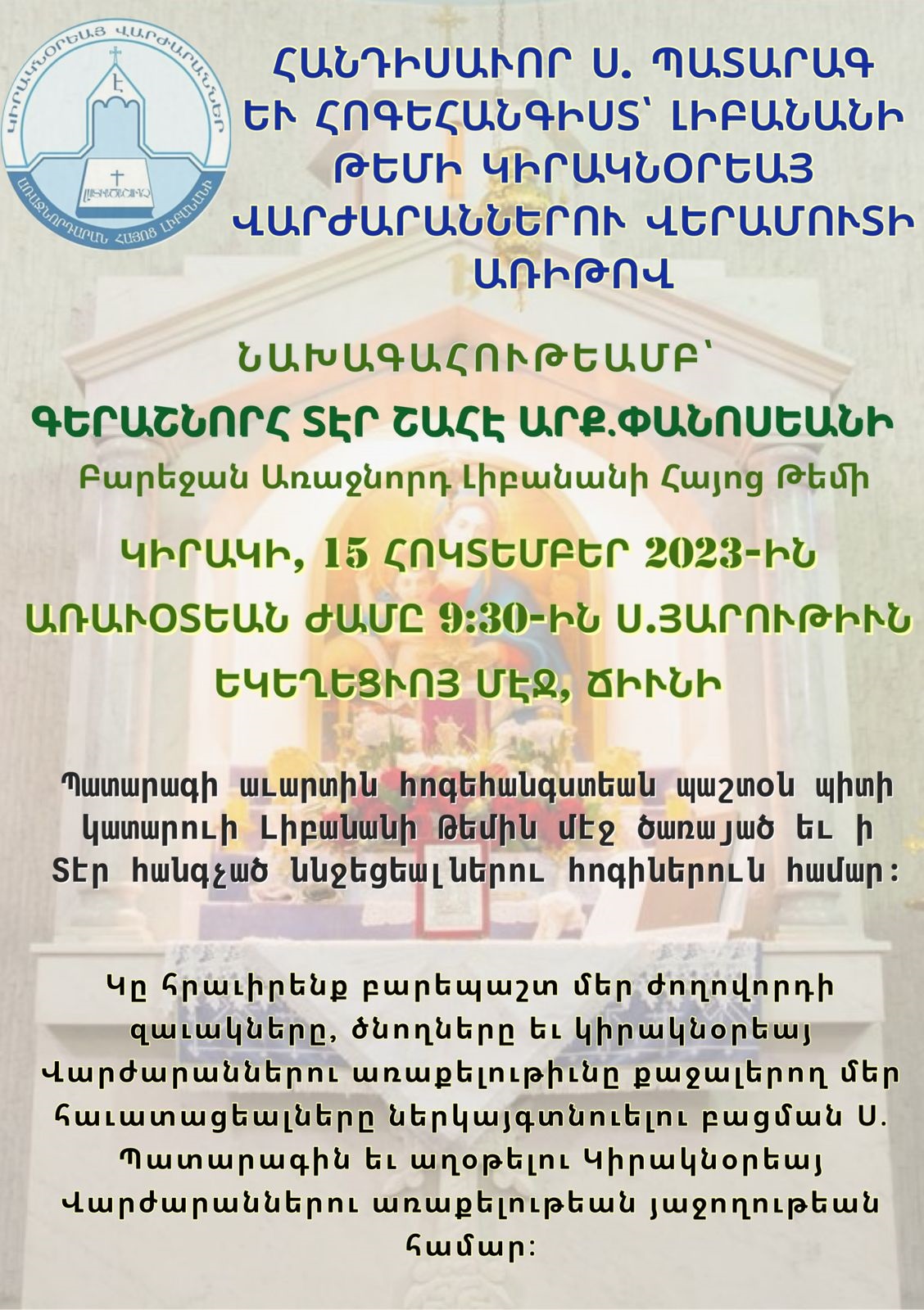 – Շողիկ Թերզեան կարկանդակ եւ օշարակ բուժարանի պատսպարեալներուն, իր ամուսնոյն` Սարգիս Իտի մահուան յիշատակին