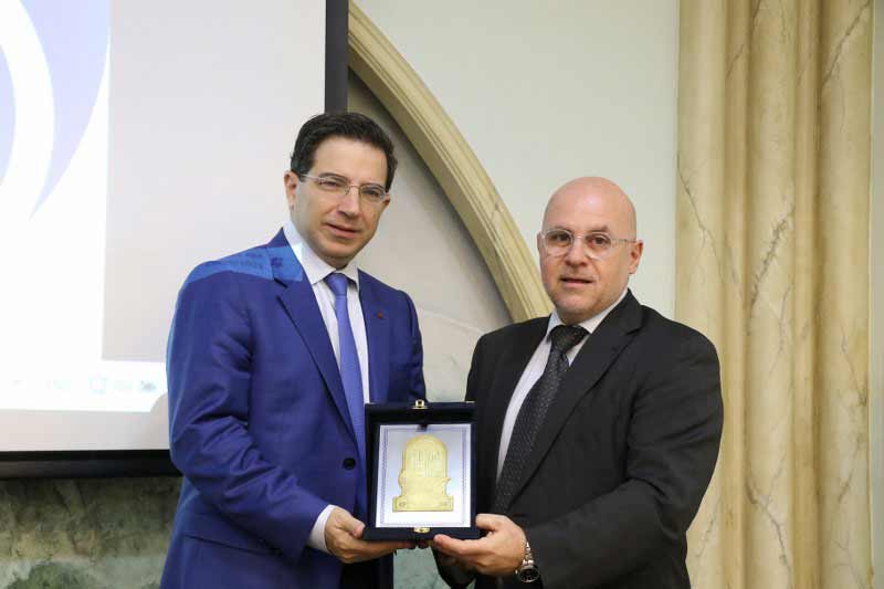 Աշակերտներուն կողմէ աւանդական աղուհացով դիմաւորումէն ետք, Մեսրոպեանի տնօրէն Կրեկուար Գալուստ ողջունեց Նաժժարը որպէս իր սերունդի լաւագոյն ֆրանսախօս գրողներէն մէկը ամբողջ աշխարհի տարածքին, որ իր գործերով եւ գործունէութեամբ փայլուն կերպով կը համատեղէ համամարդկային խնդիրներու նկատմամբ ուշադրութիւնը` հարազատ հայրենիքին` Լիբանանի մշակոյթը տարածելու առաքելութեան հետ: