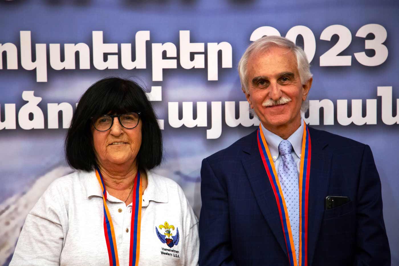 ՀՄԸՄ-ի Պատգամաւորական 13-րդ Ընդհանուր ժողովի աշխատանքներուն առընթեր, չորեքշաբթի, 4 հոկտեմբեր 2023-ի կէսօրին, ՀՄԸՄ-ի Կեդրոնական վարչութիւնը պարգեւատրեց վաստակաշատ երկու միութենականներ: