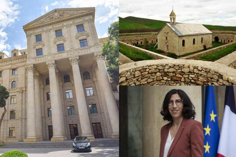 Հաճիզատէ ֆրանսացի նախարարը մեղադրած է կողմնակալութեան» համար: «Ազրպէյճանը քաջ կը գիտակցի իր տարածքին մէջ գտնուող բոլոր մշակութային ու պատմական յուշարձաններու պաշտպանութեան կարեւորութիւնը եւ, մասնաւորաբար, այդ ծիրին մէջ իր պարտաւորութիւնները: Ֆրանսան, իբրեւ այլ ժողովուրդներու պատկանող պատմամշակութային արժէքները օտարած երկիր, բարոյական իրաւունք չունի նման հարցեր արծարծելու: Պնդումները, թէ մշակութային եւ պատմական յուշարձանները վտանգի տակ կը գտնուին Ազրպէյճանի հակաահաբեկչական քայլերէն ետք, անհիմն են, ինչ որ հաստատուած է շրջանին մէջ ՄԱԿ-ի երկու առաքելութիւններու կողմէ», ըսած է Ազրպէյճանի արտաքին գործոց նախարարութեան բանբերը: