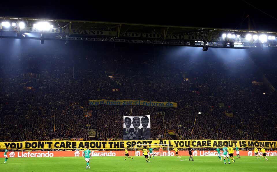Երեքշաբթի գիշեր «Չեմփիընզ լիկ»-ի մրցումներուն ծիրին մէջ Գերմանիոյ Պորուսիա Տորթմունտի համակիրները մեծ պաստառներ բարձրացուցին իբրեւ բողոք` «Եու. Է. Էֆ. Ա.»-ի յաջորդ եղանակի «Չեմփիընզ լիկ»-ի նոր ձեւի որդեգրման դէմ: