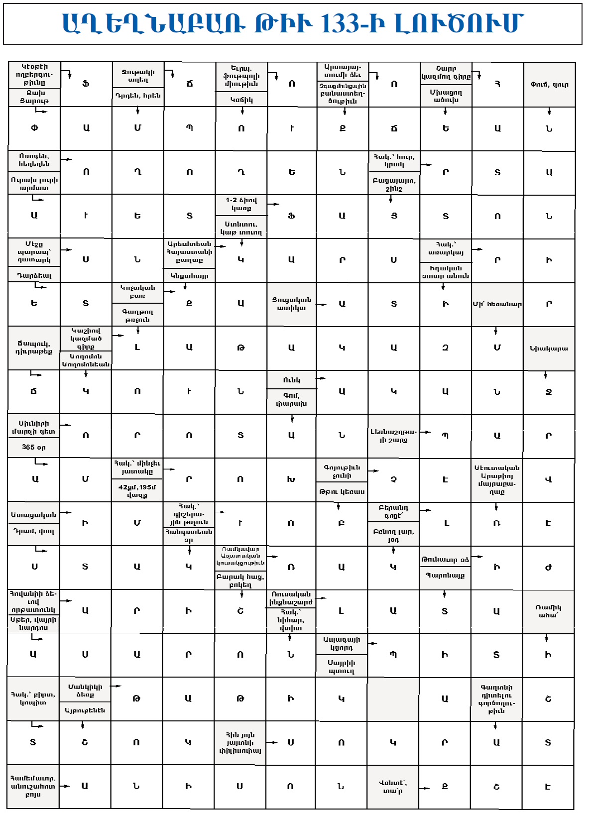 Պատրաստեց՝ <strong>ՆԱՆՕՐ ԳՈՉՈՒՆԵԱՆ-ԹԱՇՃԵԱՆ</strong> <a href="https://www.aztagdaily.com/wp-content/uploads/2023/11/agheghnapar-tiv-133-loudzoum.jpg"><img class="aligncenter size-full wp-image-599703" src="https://www.aztagdaily.com/wp-content/uploads/2023/11/agheghnapar-tiv-133-loudzoum.jpg" alt="" width="1183" height="1637" /></a>