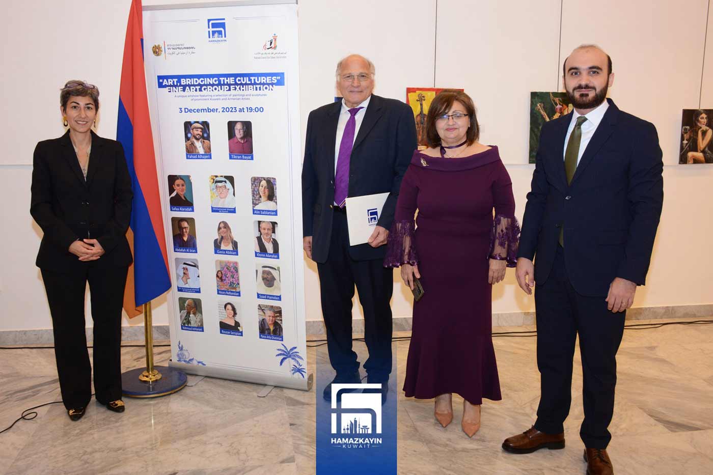 Համազգային հայ կրթական եւ մշակութային միութեան 95-ամեակի եւ Հայաստանի Հանրապետութեան ու Քուէյթի միջեւ յարաբերութիւններու հաստատման 30-ամեակի բարեբաստիկ առիթներով Համազգայինի Քուէյթի կազմը կիրակի, 3 դեկտեմբեր 2023-ին, երեկոյեան ժամը 7:00-ին Քուէյթի «Ատուանի» արուեստի սրահին մէջ բացումը կատարեց  «Արուեստը մշակոյթներու կամուրջ» խորագիրով  հաւաքական ցուցահանդէսին: Անիկա կը վայելէր բարձր հովանաւորութիւնը Քուէյթի մէջ Հայաստանի Հանրապետութեան դեսպանատան եւ Քուէյթի Մշակոյթի, արուեստներու եւ գրականութեան խորհուրդին: