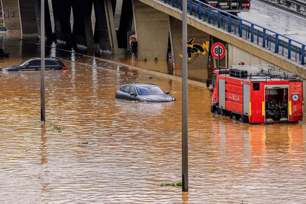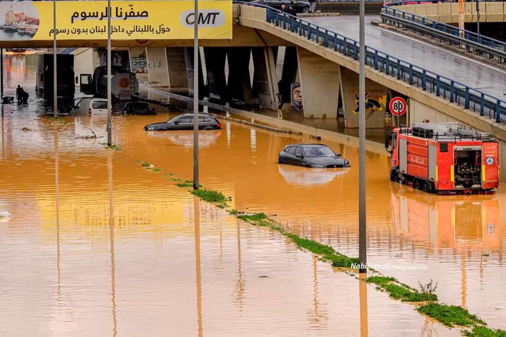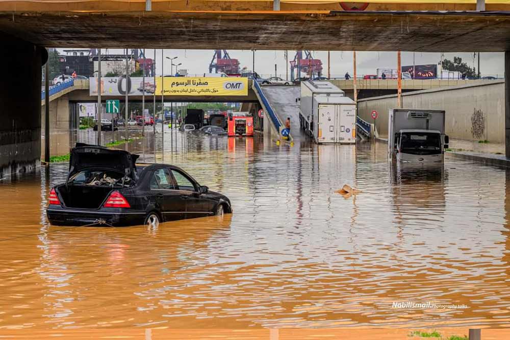 Տեղատարափ անձրեւներուն պատճառով Պէյրութի գետի ջուրին համեմատութիւնը բարձրացած էր եւ ողողած շրջակայ փողոցները, որոնցմէ հիմնականին մէջ ազդուեցաւ Քարանթինան: