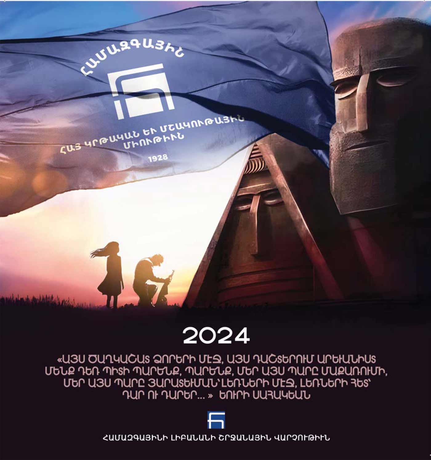 Օրացոյցին մէջ տեղադրուած արցախեան գրական տողերը մեզի տրամադրուեցան Արցախի Համազգայինի գրասենեակի ներկայացուցիչ Հերմինէ Աւագեանին կողմէ, իսկ Լիբանանի Շրջանային վարչութեան ջանքերով գրութիւնները վերածուեցան մեսրոպեան ուղղագրութեան: Էջադրումը կատարեց Յովիկ Քլինճիպաշեանը, տպագրութիւնը ստանձնեց Համազգայինի «Վահէ Սէթեան» տպարանը` յանձինս իւրաքանչիւր հովանաւորի, որոնք սատարեցին 2024 թուականի օրացոյցի ծնունդին: Աւանդութեան համաձայն, Համազգայինի օրացոյցը այս տարի եւս կ՛ընդգրկէ հայկական տոմարներու անուանացանկը: Շնորհակալութիւն բոլոր հովանաւորներուն: