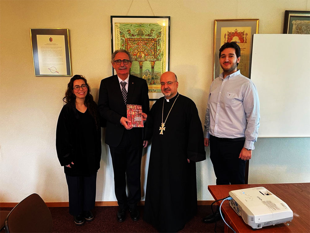 Այցելութեան աւարտին արքեպիսկոպոսը առաջնորդ սրբազանին եւ հայր սուրբին նուիրեց իր հրատարակած մեծահատոր եւ շքեղ հրատարակութիւններէն:
