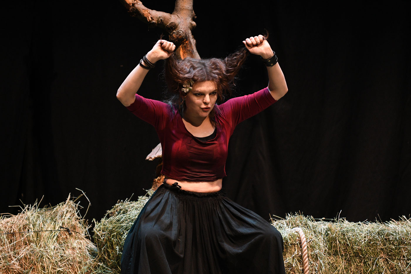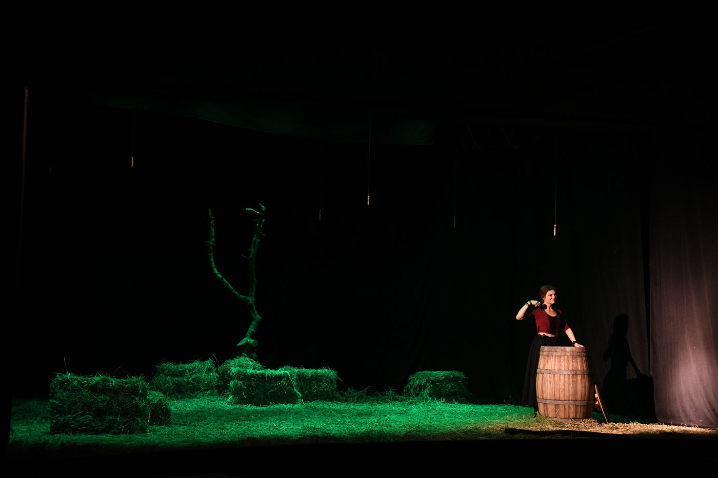 Բեմը նուազագոյն յարդարանքով միջավայր մը ստեղծած էր ընտանի: Քաղաքացիի մը համար` գրեթէ նկարազարդ գիրքի մը մէջ հանդիպելիք պատկեր մը. խոտի դէզեր, տախտակեայ խոշոր տակառ մը, յարդի կապոցներ եւ երկճիւղ ամուլ-անտերեւ ծառ մը: Պատահական, կամ բանաստեղծական տարրեր չէին անոնք, անոնցմէ իւրաքանչիւրը ունէր իր տեղն ու դերը եւ է՛ր խտացեալ խորհրդանիշը իր վայրի ու ժամանակի: