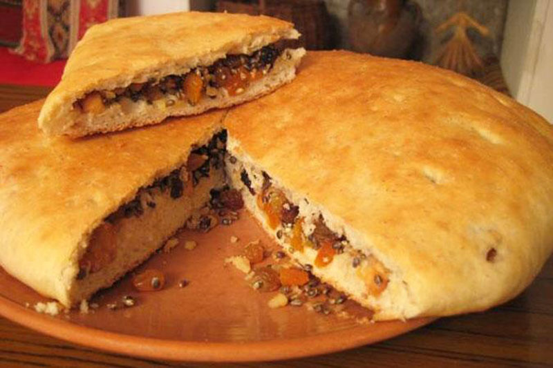 Խմորը հանել, կլոր գրտնել, կեդրոնը դնել միջուկը, ապա խմորը ծրարի պէս հաւաքել, յետոյ տափակցնել, գրտնակով թեթեւ վրայէն անցնիլ եւ ձգել, որ 30 վայրկեան եւս հանգչի: Երեսը բուսական ձէթով ծեփել եւ 180 ջերմաստիճան փուռի մէջ եփել շուրջ կէս ժամ, մինչեւ որ երեսը ոսկեգոյն դառնայ: