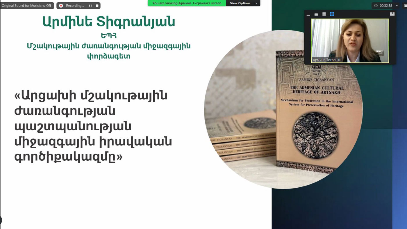 Մանրամասնօրէն ներկայացուց Ազրպէյճանի պետական քաղաքականութիւնը` Արցախի հոգեւոր-մշակութային ժառանգութեան ոչնչացման, ապօրինի վերակառուցման եւ նենգափոխման, եւ ինքնութեան ձեւախեղման իրականացումներով յատկանշուած: