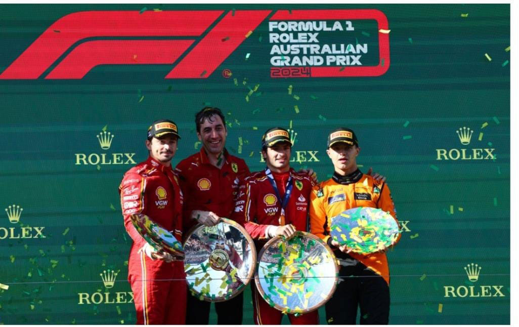 Քարլոս Սայնց եւ Շարլ Լըքլեր Ֆեռարիի հետ 1-2 իրագործեցին երէկուան Աւստրալիոյ կրան փրիին, որուն ընթացքին աշխարհի ախոյեան Մաքս Վերշթափըն 4 շրջան ետք մրցումը լքեց, երբ ետեւի անիւին արգելակի հարցով կրակ առած էր անոր անիւը: Վերշթափըն վերջին անգամ 2022-ին Աւստրալիոյ կրան փրիին կիսատ ձգած էր մրցումը:
