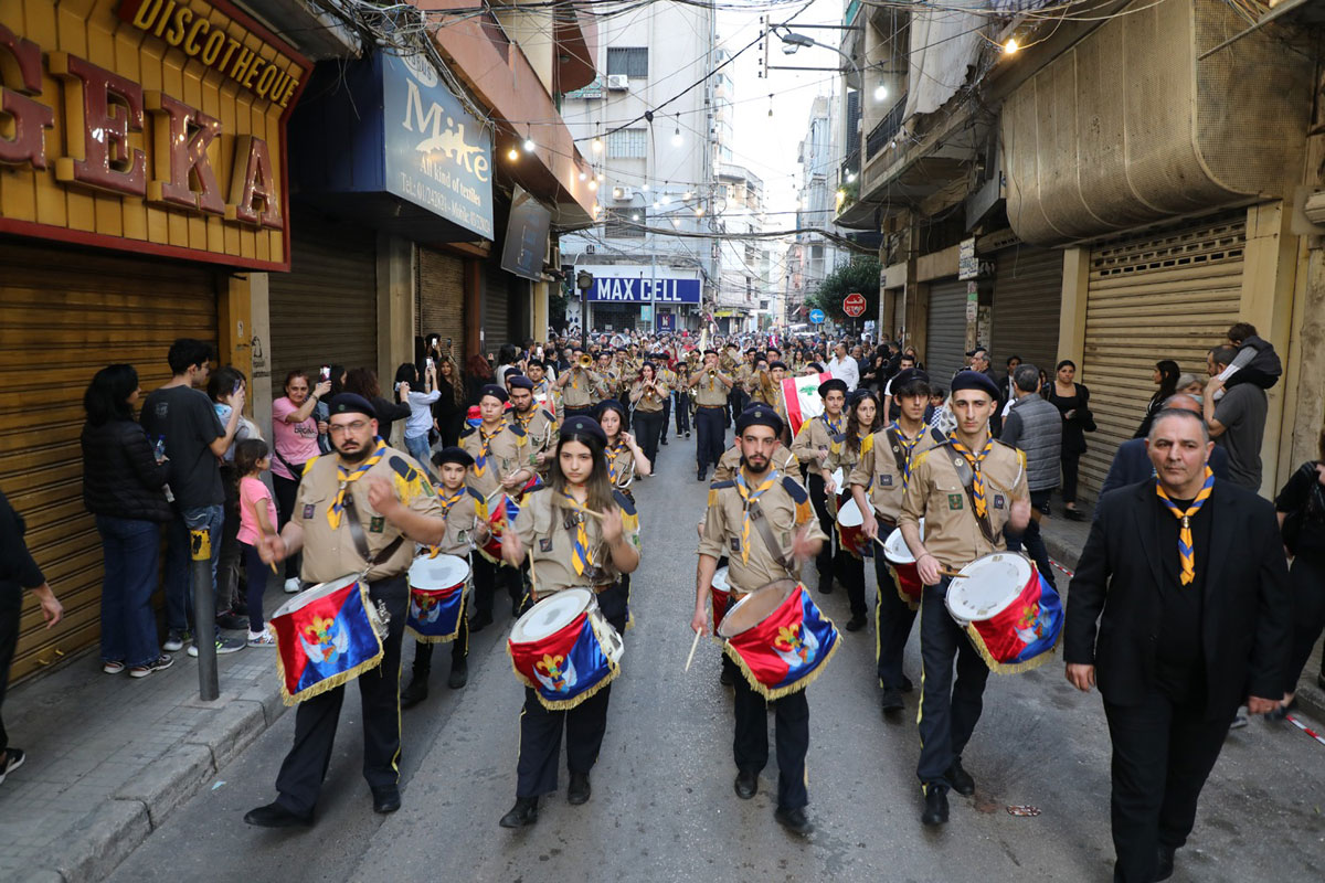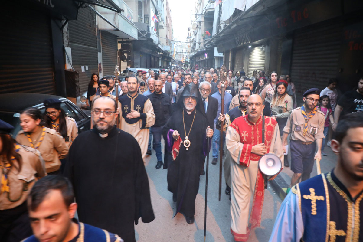 Յետեկեղեցական արարողութեան` կազմուեցաւ թափօրը, որ առաջնորդութեամբ ՀՄԸՄ-ի շեփորախումբին, գլխաւորութեամբ սրբազան հօր, մասնակցութեամբ քահանայից դասուն, դպրաց դասին, ինչպէս նաեւ` ՀՅԴ Լիբանանի Կեդրոնական կոմիտէի եւ երեսփոխանական պլոքի ներկայացուցիչ Յակոբ Բագրատունիի, Պուրճ Համուտի փոխքաղաքապետ Մարտիկ Արսլանեանի, ՀՅԴ Կեդրոնական կոմիտէի անդամներու, Ազգային երեսփոխանական ժողովի ատենապետ Վիգէն Աւագեանի, Ազգային վարչութեան ատենապետ Գրիգոր Արսլանեանի, փոխատենապետ, նախկին նախարար Վարդինէ Օհանեան-Գէորգեանի, Ազգային վարչութեան անդամներուն, պատկան մարմիններու ներկայացուցիչներուն ու ժողովուրդին` շրջեցաւ Պուրճ Համուտի փողոցներուն մէջ: