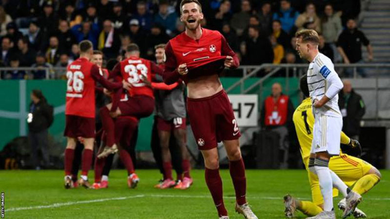 Գերմանիոյ Գ. դասակարգի ակումբներէն Զաարպրիւքըն, որ դուրս ձգած էր ախոյեան Պայերն Միւնիխը, Այնթրախթ Ֆրանքֆորթը եւ Պորուսիա Մէօնշընկլատպախը դուրս մնաց Գերմանիոյ բաժակի կիսաւարտականին` պարտութիւն մը կրելէ ետք Բ. դասակարգի Քայզըրսլաութըրնէն: