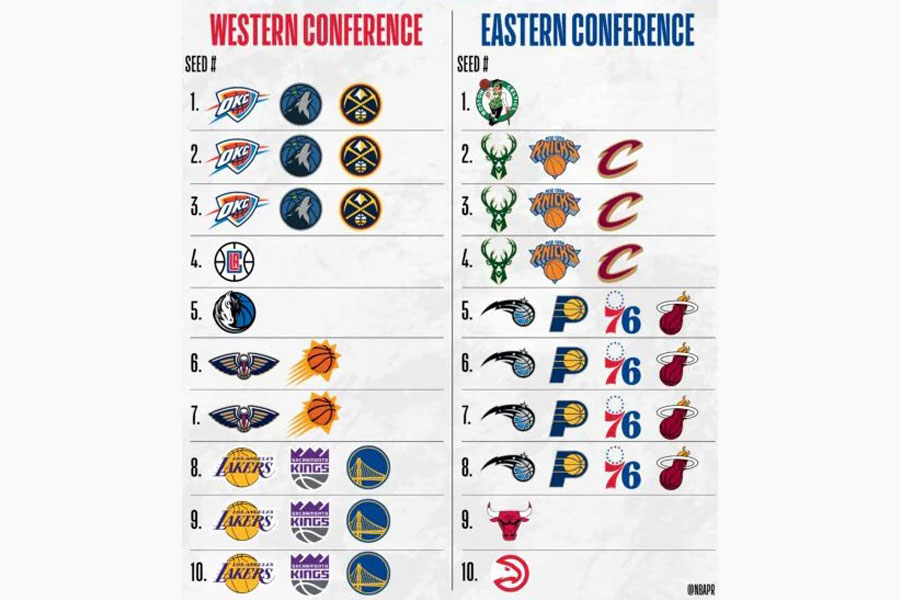 Արեւմտեան շրջանին մէջ միայն Լոս Անճելըս Քլիփըրզ (4-րդ) եւ Տալաս Մեւրիքս (5-րդ դիրք) իրենց դիրքերուն վրայ պիտի մնան, այսօրուան արդիւնքը ինչ որ ալ ըլլայ:
