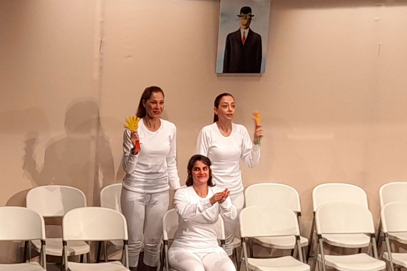 Պատկերը կը ներկայացնէ հաւաքականութիւն մը` առանց նշելու, թէ ի՛նչ տեսակի համախմբում մըն է: Եկեղեցի՞, թերեւս: Կուսակցութի՞ւն, կրնայ ըլլալ: Ազգ-պետութի՞ւն, յայտնի չէ: Այս հաւաքականութիւնը պիտի գումարէ իր համախմբումը, որուն պիտի մասնակցի իր նոր ղեկավարը: Թատրոնը կը գործածէ «առաջնորդը» եզրը, բայց երեւի պէտք չէ զայն շփոթել եկեղեցական տիտղոսին հետ: Հաւաքականութեան անդամները կ՛աճապարեն հաւաքին հասնելու եւ լաւ նստարաններ ապահովելու համար: Բոլորը հագած են նոյնը: Կարծէք` տարազ մըն է: Ընդունուած տարազն է այդ խմբաւորումին: Չկայ անձնական պատշաճեցում, անձնական ոճ կամ անձնական նախընտրութիւն: Անդամները կը ներկայանան միայն իրենց համար զատուած եւ խումբին կողմէ ընդունուած կերպով, տարազով, դիմանկարով: Անտարակոյս, որ հաւաքական կեանքը կարեւոր եւ շինիչ բան մըն է հասարակութեան մը համար: Բայց կարեւոր է, որ հաւաքականութեան ալիքին մէջ ամբողջովին չընկղմին անհատը եւ անհատականութիւնը:
