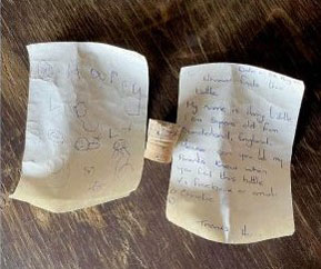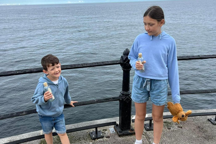 5 տարեկան Հարի եւ անոր քոյրը` 12 տարեկան Կրէյս, կ՛ապրին Անգլիոյ Սանտըրլենտ շրջանին մէջ: 28 օգոստոս 2023¬ին անոնցմէ իւրաքանչիւրը ապակիէ շիշ մը կը նետէ ծովուն մէջ` տեսնելու համար, թէ ան մինչեւ ո՛ւր կրնայ երթալ: Իրենց շիշերուն մէջ անոնք դրած էին ձեռագիր նամակ մը, ուր անոնք իրենք զիրենք կը ներկայացնէին եւ գրած էին իրենց մօր ե-նամակի հասցէն: