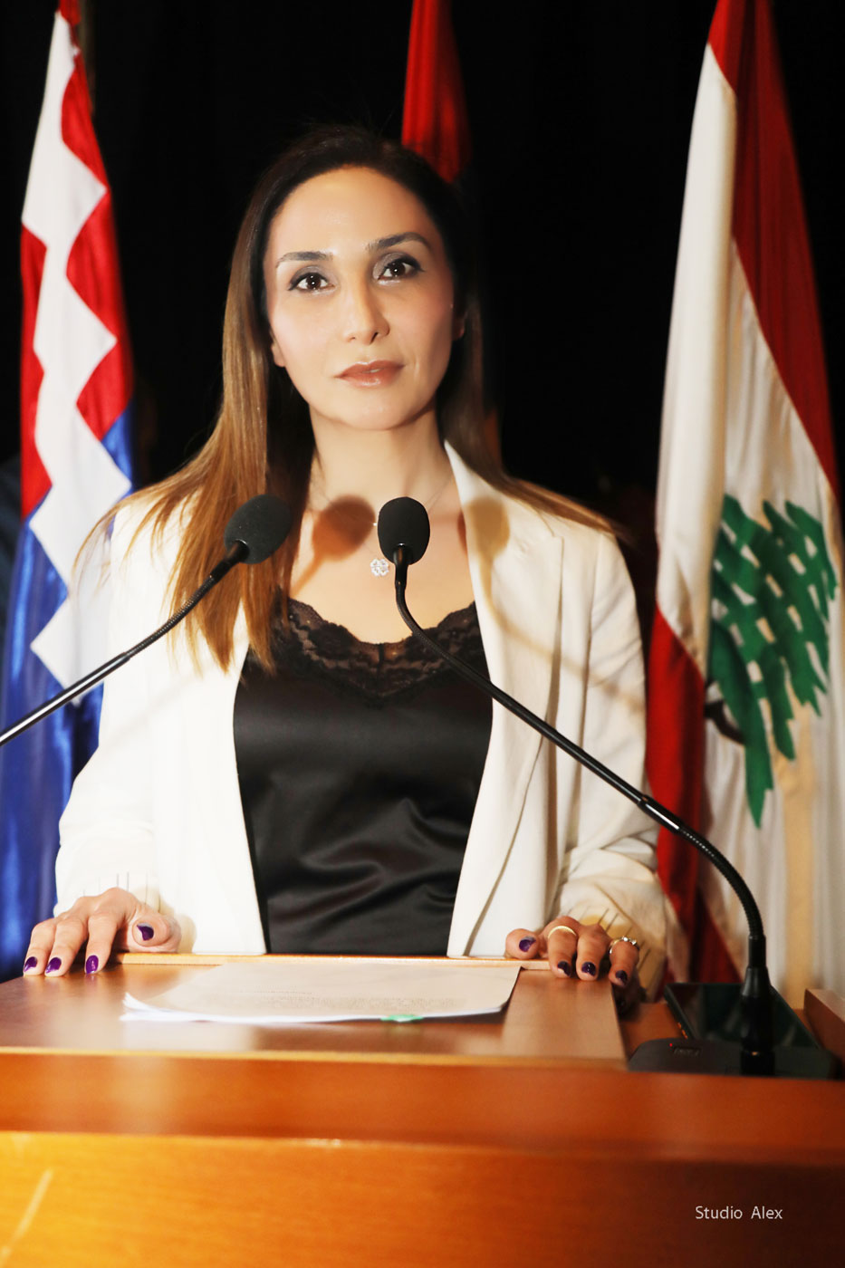 Լիբանանի, Հայաստանի եւ Արցախի քայլերգներու ունկնդրութենէն ետք, Համազգայինի Լիբանանի Շրջանային վարչութեան անունով բացման խօսքը արտասանեց Նայիրի Ադամեան, որ նշեց, թէ Հայոց ցեղասպանութենէն փրկուած մեր նախնիները հիմնեցին դպրոցներ, մարմնակրթական միութիւններ եւ մշակութային միութիւններ, որպէսզի խաւարամտութեան, ոճիրի, սպանութեան եւ բնաջնջումի ծրագիրները ձախողին, եւ այդ բոլորը ըրին` հաւատալով, որ խաւարին կարելի է յաղթել միայն լոյսով: Ան ըսաւ, որ այս շրջագիծին մէջ պէտք է դիտել Համազգայինի «Լոյսով` լոյսին» նշանաբանը: Ադամեան աւելցուց, որ այսօրուան հանդիսութեան Համազգայինի խումբերուն անդամները վկաներն են այն փաստին, որ Ցեղասպանութեան կարելի է յաղթել մշակոյթով եւ կրթութեամբ` լոյսով: