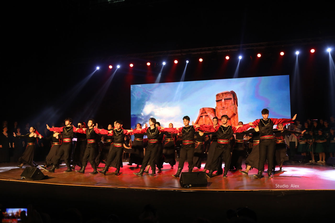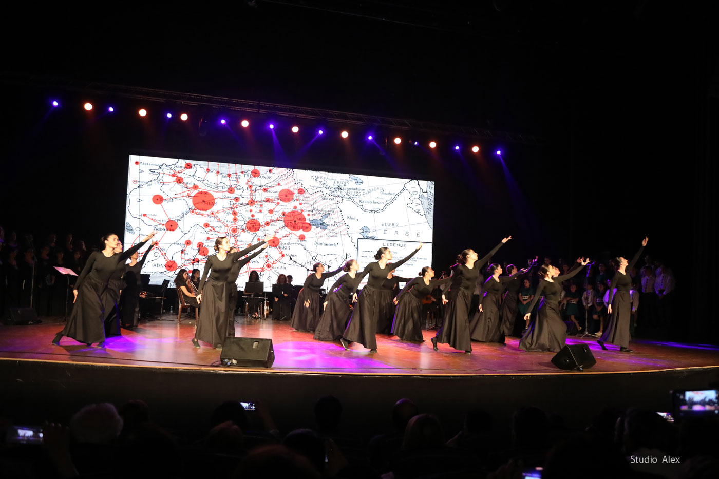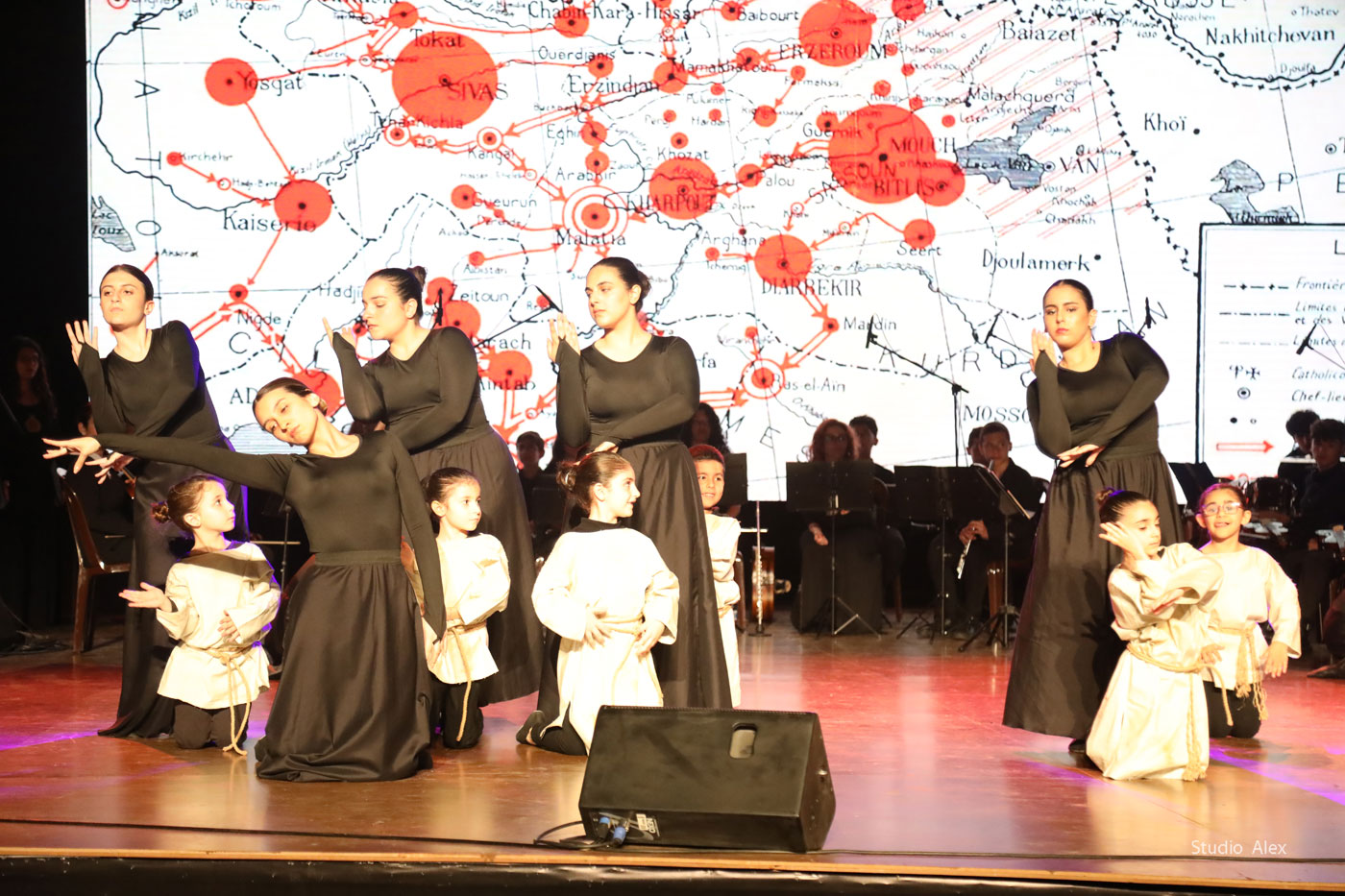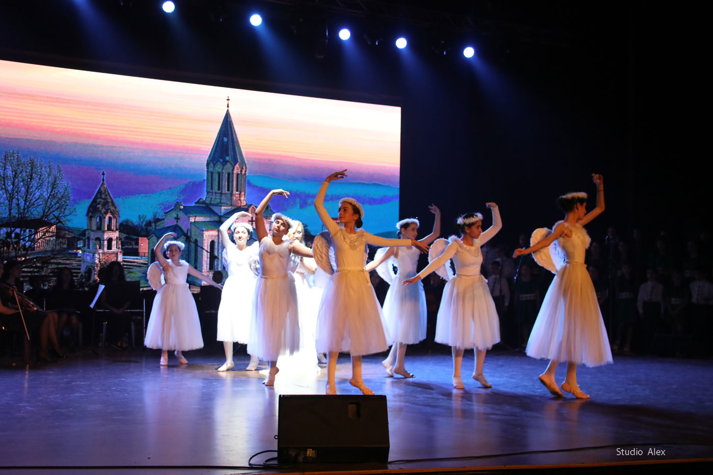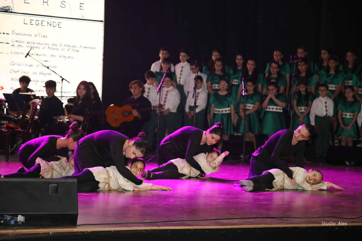 «Կարկաչ» մանկապատանեկան երգչախումբը երգեց «Մայր Հայաստան»-ը, իսկ «Արեգ»-ի աշակերտները ներկայացուցին «Արիւնոտ թթխմոր»-ը: Գեղարուեստական յայտագիրը շարունակուեցաւ` «Գուսան»-ի «Ի զէն» կատարումով, «Քնար»-ի «Գաղթ» պարային ներկայացումով, «Բարսեղ Կանաչեան» երաժշտական քոլեճի նուագախումբի «Ազգ փառապանծ» կատարումով եւ «Կարկաչ» երգչախումբի «Ազատ Հայաստան» երգով: