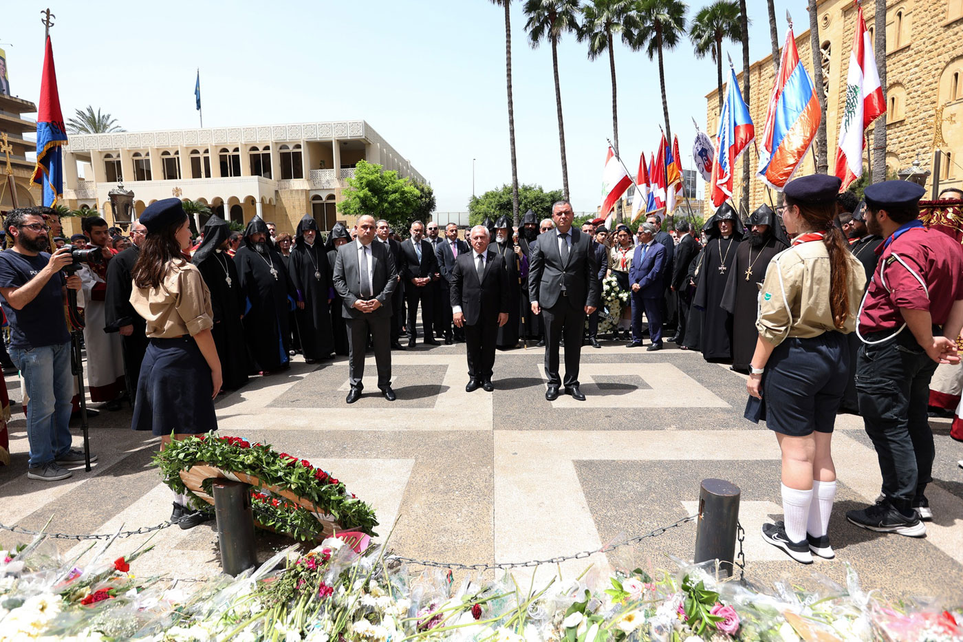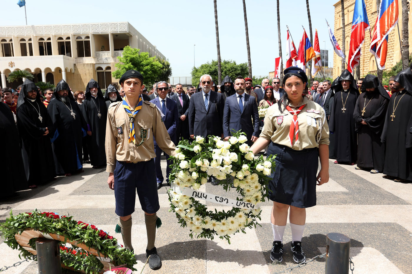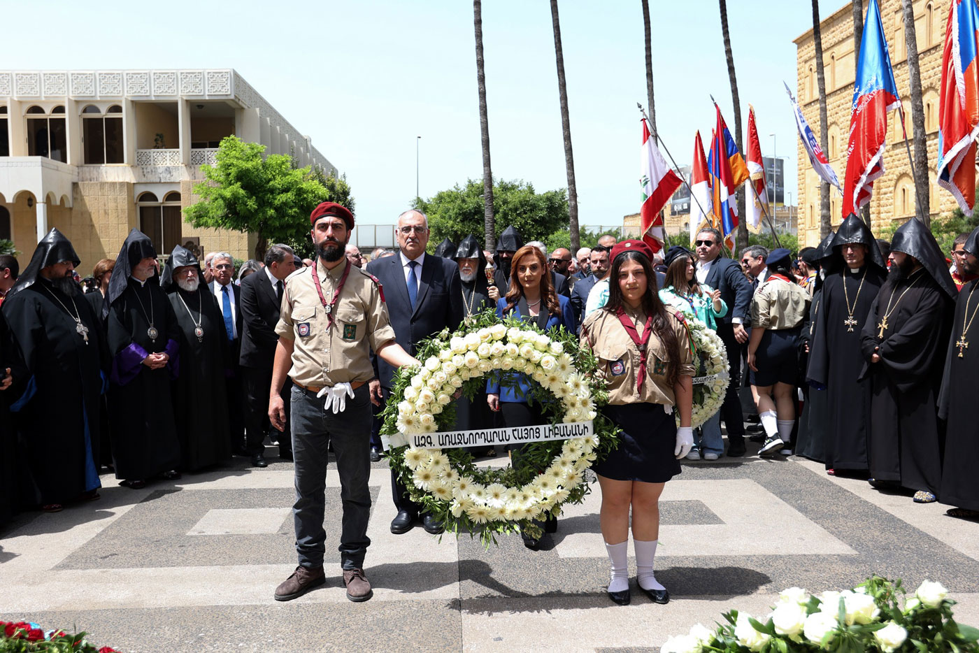 Յայտնենք, որ ս. պատարագին եւ ծաղկեպսակներու զետեղման արարողութեան իրենց մասնակցութիւնը բերին` Լիբանանի մէջ Հայաստանի Հանրապետութեան դեսպանն ու դեսպանատան անձնակազմը, Մեծի Տանն Կիլիկիոյ կաթողիկոսութեան Ազգային կեդրոնական վարչութեան անդամները, Սոցիալ դեմոկրատ հնչակեան կուսակցութեան (ՍԴՀԿ), Հայ յեղափոխական դաշնակցութեան (ՀՅԴ) եւ Ռամկավար ազատական կուսակցութեան (ՌԱԿ) վերին մարմիններու ներկայացուցիչները, նախկին թէ ներկայ երեսփոխաններ ու նախարարներ, լիբանանահայ համայնքի բոլոր կազմակերպութիւններու, կառոյցներու, մարմիններու ու բարեսիրական միութիւններու ներկայացուցիչները: