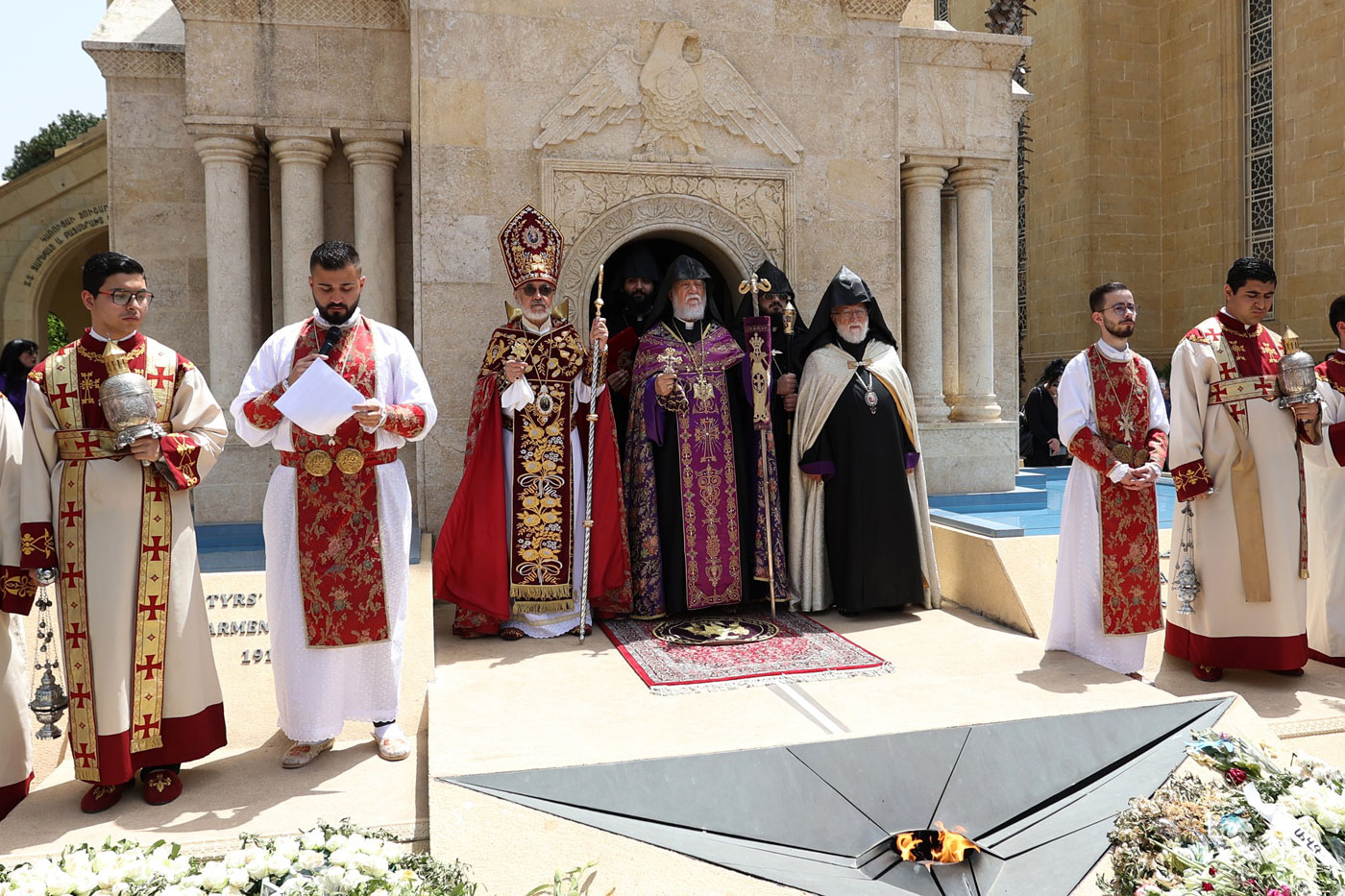 Այս տարի Հայոց ցեղասպանութեան ոգեկոչումը կը նշենք ա՛լ աւելի ծանր մարտահրաւէրներու ներքոյ, սակայն` առանց կորսնցնելու փրկութեան մեր հաւատքն ու արդարութեան տիրանալու մեր պայքարի ոգին: Մեծի Տանն Կիլիկիոյ կաթողիկոսութիւնը, ի սկզբանէ ըլլալով ճակատագրակից իր ժողովուրդին, նաե՛ւ պայքարակից է անոր դատին: Առ այդ, հանդիսապետութեամբ Արամ Ա. կաթողիկոսին, չորեքշաբթի, 24 ապրիլ 2024-ի առաւօտուն մայրավանքի Ս. Գրիգոր Լուսաւորիչ մայր տաճարին մէջ Լիբանանի հայոց թեմի առաջնորդ Շահէ արք. Փանոսեան մատուցեց 1915-ի սրբադասեալ նահատակներուն նուիրուած ս. պատարագ, որուն աւարտին, հայրապետին հանդիսապետութեամբ, Սրբոց Նահատակաց յուշարձան-մատուռին դիմաց տեղի ունեցաւ բարեխօսական կարգ եւ ծաղկեպսակներու զետեղում: