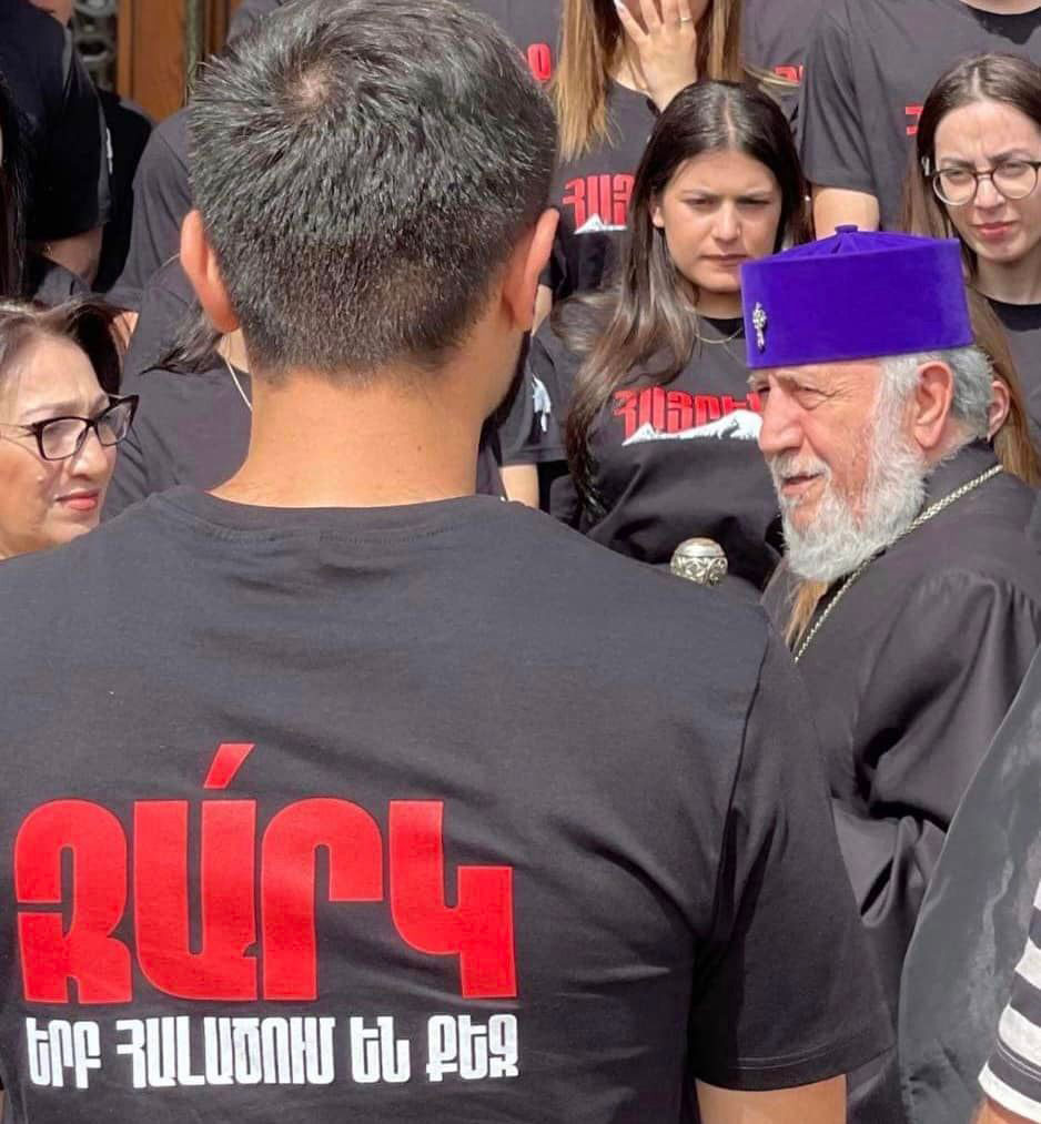 Հանդիպման ընթացքին կաթողիկոսը նաեւ անդրադարձաւ Հայաստանի դիմաց ծառացած մարտահրաւէրներուն եւ ապահովութեան սպառնալիքներուն: Հայրապետը ընդգծեց, որ տիրող ծանր իրավիճակէն կարելի է դուրս գալ միայն հայրենիքի ապագայի տեսլականին շուրջ համազգային միաբանութեան հաստատման ճանապարհով` մեր կեանքէն հեռացնելով ատելութիւնը եւ թշնամանքն ու հատուածական շահերու նկրտումները: