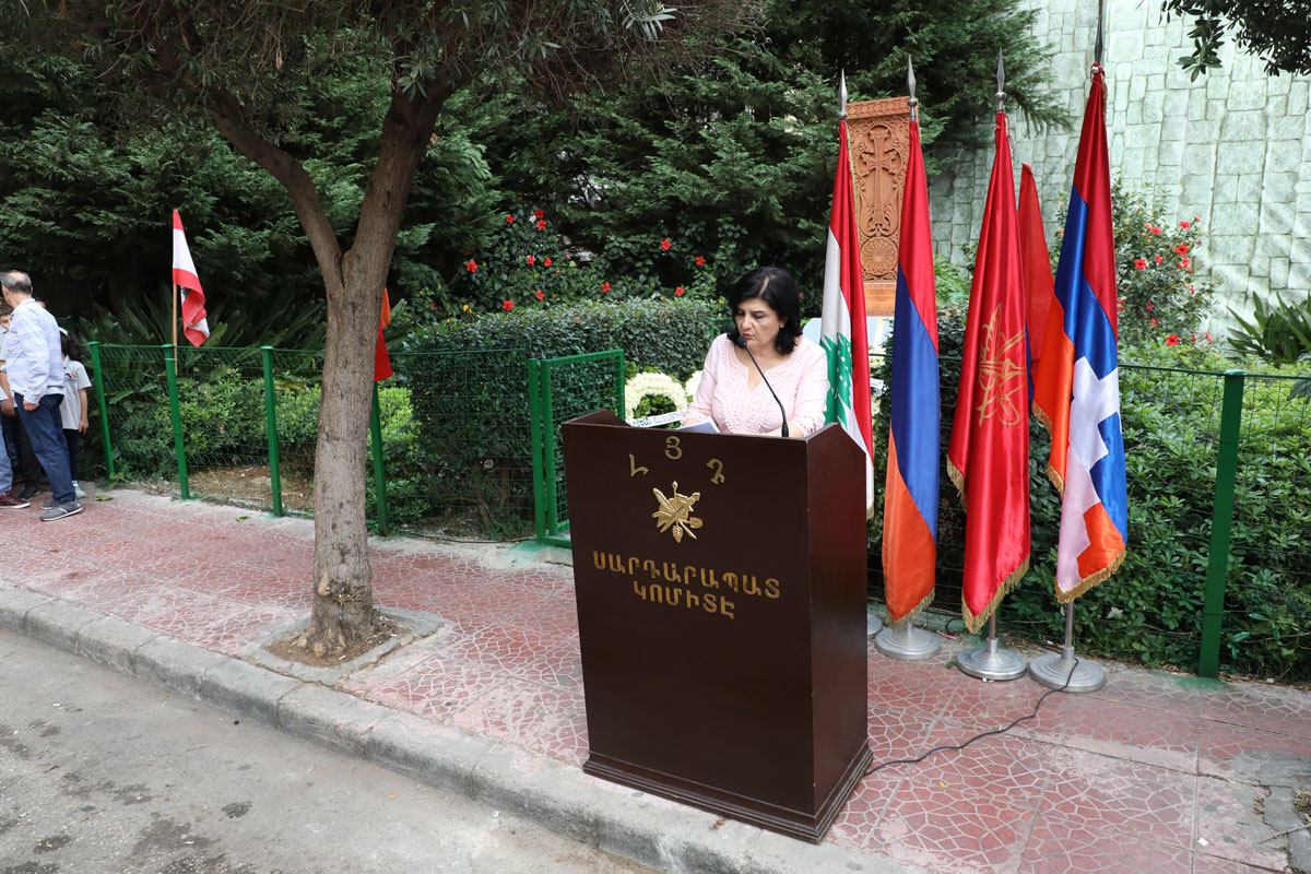 Հայոց ցեղասպանութեան նահատակներուն յիշատակը յաւերժացնող խաչքարին առջեւ զետեղուեցան ծաղկեպսակներ, ապա հնչեցին Լիբանանի, Հայաստանի եւ Արցախի քայլերգները: Բացման խօսքը արտասանեց Մարալ Մահսէրէճեան, որ դիտել տուաւ, թէ Հայոց ցեղասպանութենէն վերապրածներուն կողմէ յաջորդող սերունդներուն փոխանցուած ապրումներն ու պատմութիւնները լոկ պատմութիւն չմնացին, որովհետեւ այսօր մենք մեր սեփական աչքերով ականատես կը դառնանք նոյնինքն Թուրքիոյ ծրագրած եւ Ազրպէյճանի գործադրած երկրորդ ցեղասպանութեան, ինչ որ անգամ մը եւս կը փաստէ թուրքին ախորժակներուն ոչ միայն նոյնը մնալը, այլ` անոնց սրիլը: «Վառ օրինակը` 2023-ի սեպտեմբերին Արցախի դէմ շղթայազերծուած յարձակումն ու հայաթափումը, իսկ հիմա Հայաստանի Հանրապետութեան ինքնիշխան տարածքներու` Տաւուշի մարզի միակողմանի զիջումով 4 գիւղերու յանձնումի գործընթացը, որ կ՛իրականանայ նոյնինքն Հայաստանի իշխանութեան կողմէ», ըսաւ ան: