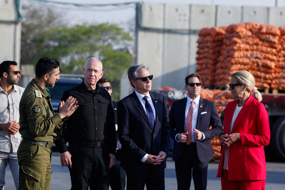Միացեալ Նահանգներու արտաքին գործոց նախարարը այցելեց Քարամ Ապու Սալեմ անցակէտ, ուրկէ կ՛անցնին Կազա ուղարկուող օժանդակութիւնները, եւ լսեց իսրայէլացի պաշտօնատարներու, ներառեալ պաշտպանութեան նախարար Եոաւ Կալանթի օժանդակութիւններու հոսքի «կշռոյթը բարձրացնելու համար թափուած ջանքերուն» մասին բացատրութիւնները:
